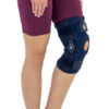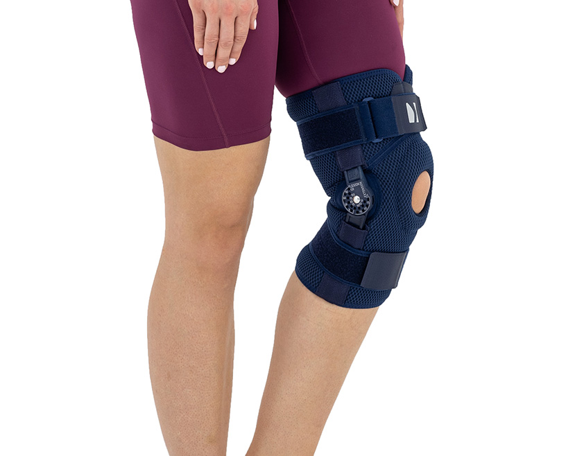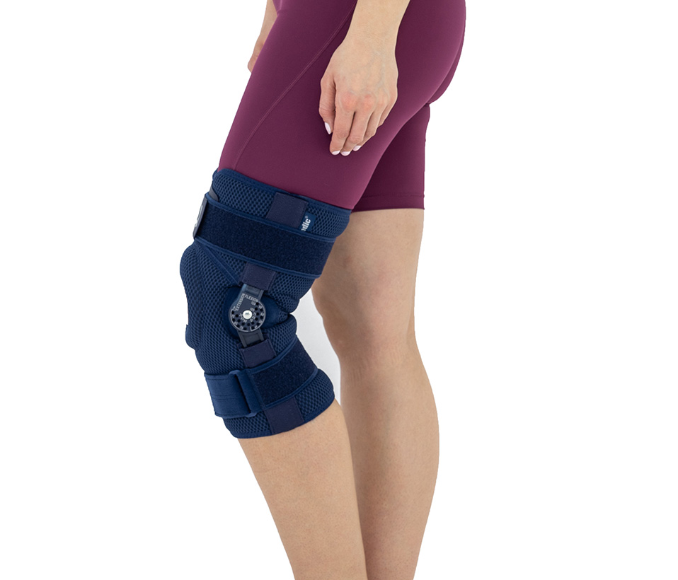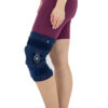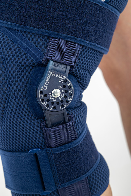 Orteza zamknięta z surowca ProSix™, posiada dwa niezależne zespoły pasów VELCRO oraz jednoosiowe szyny boczne z włóknami węglowymi. Elastyczność szyn gwarantuje idealne przyleganie i stabilizację stawu, a specjalne zegary umożliwiają precyzyjną regulację kąta zgięcia i wyprostu. Wewnętrzna perforacja odprowadza wilgoć, a anatomicznie wyprofilowany pierścień przeciwgrzybowy zapewnia wysoką stabilizację stawu rzepkowo-udowego, ułatwiając rehabilitację.