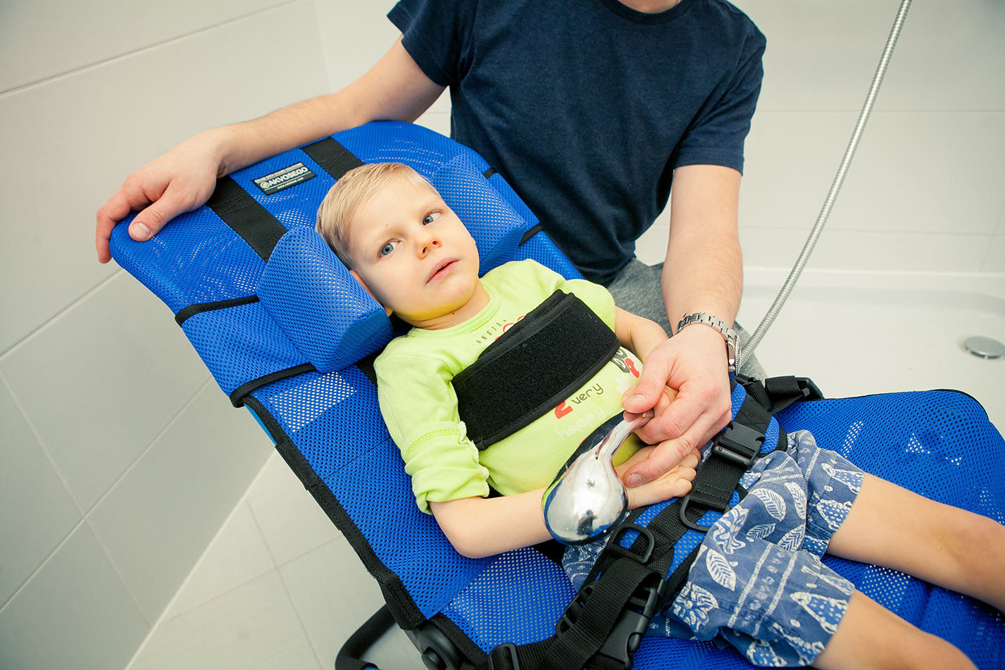 Krzesełko kąpielowe AKVOSEGO™ zostało zaprojektowane z myślą o zapewnieniu optymalnej higieny dzieci cierpiących z powodu zaburzeń pracy układu nerwowego oraz mięśniowo-szkieletowego. Gdy dziecko w trakcie kąpieli potrzebuje dodatkowej stabilizacji, wówczas z pomocą przychodzi fotelik AKVOSEGO™. Dzięki naszemu wyrobowi podczas kąpieli dziecko jest właściwie zabezpieczone, ryzyko urazu mechanicznego jest praktycznie wyeliminowane, a rodzic z łatwością może samodzielnie wykonywać wszelkie czynności kąpielowe. Dzięki utrzymywaniu stabilnej i komfortowej pozycji dziecka podczas zabiegów pielęgnacyjnych, dużo łatwiej znosi ono kąpiel.
