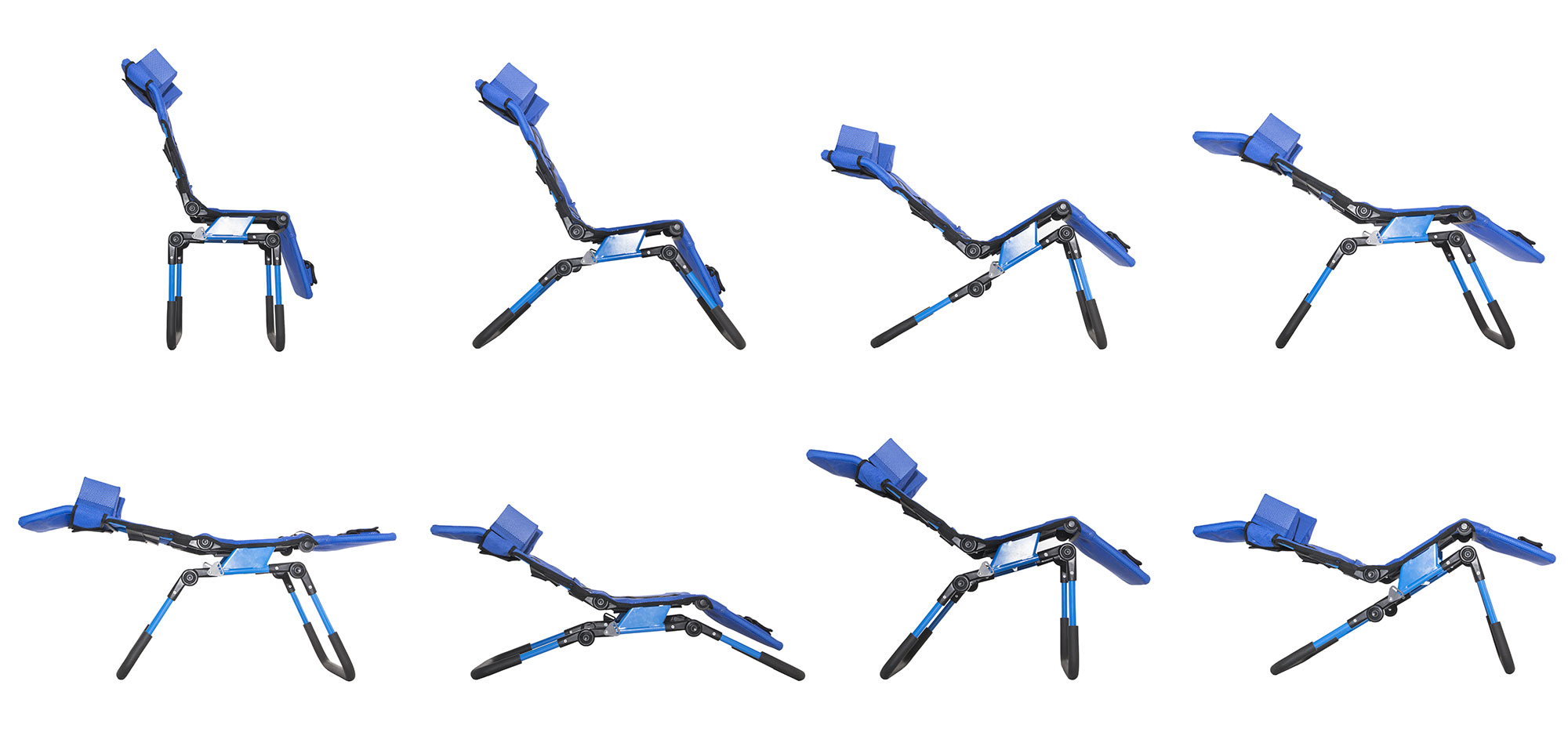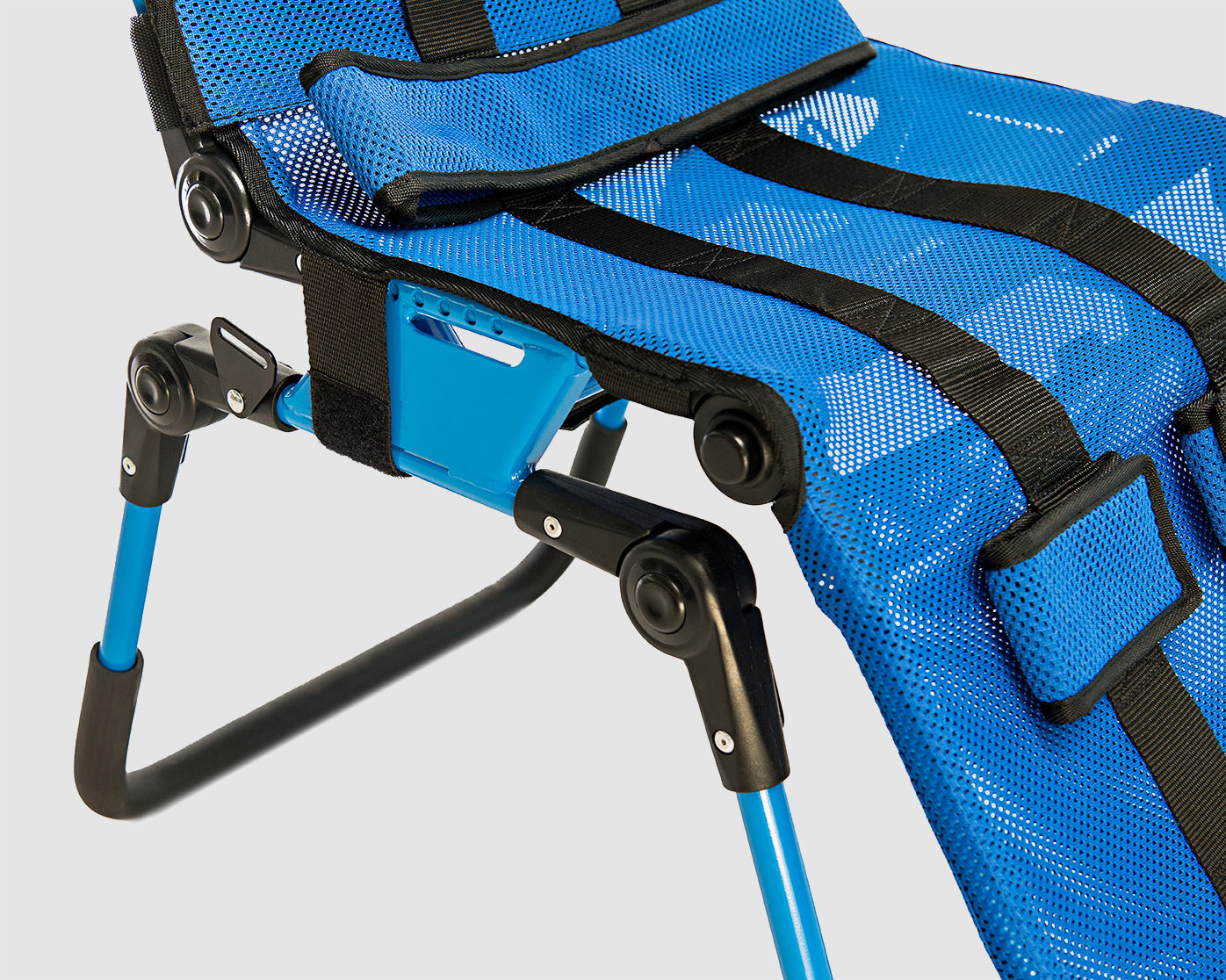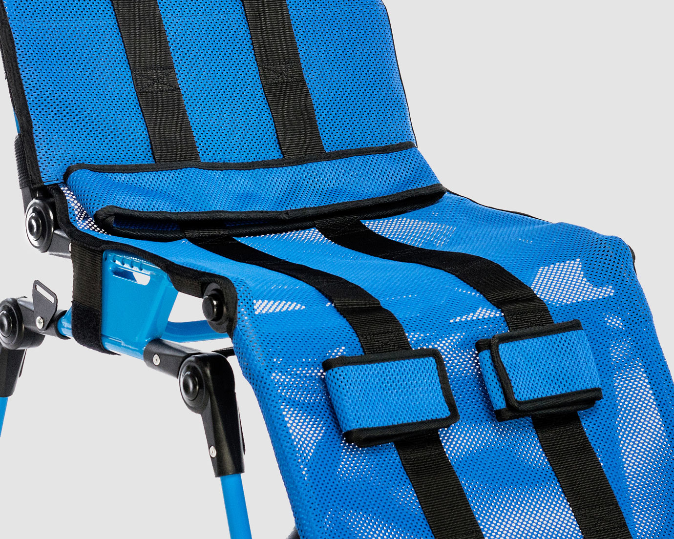 Regulowana głębokość siedziska i ruchome segmenty pozwalają na optymalne dopasowanie krzesełka. Innowacyjny system przegubowy z szerokim zakresem regulacji stelaża pozwala w pełni dopasować fotelik do wymiarów i potrzeb pacjenta.