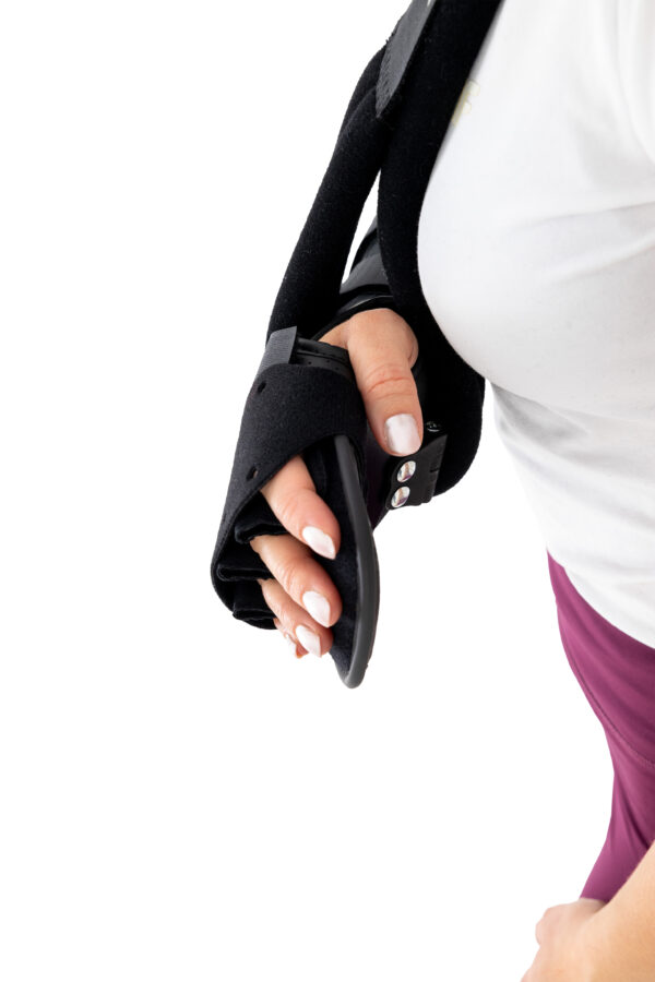 Wyrób posiada konstrukcję otwartą co ułatwia jego zakładanie na kończynę oraz regulowane zapięcie przednie co czyni ortezę jeszcze bardziej uniwersalną i ułatwia dopasowanie do każdego kształtu dłoni.
