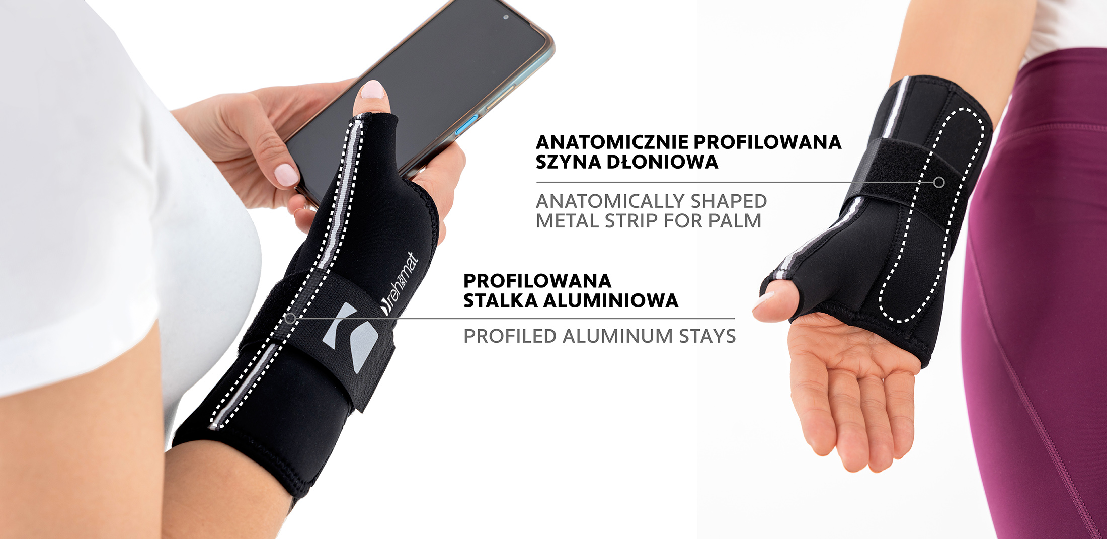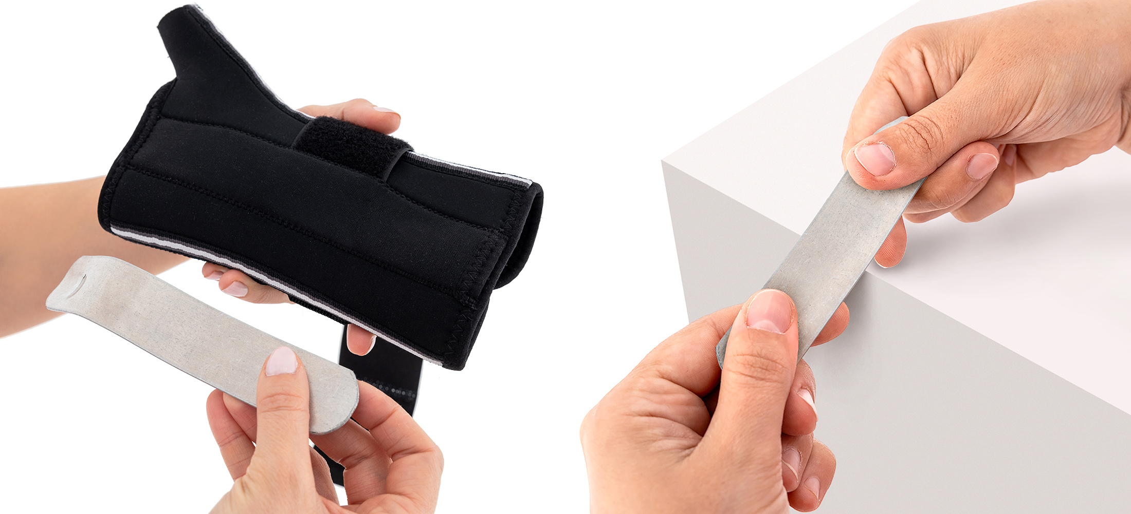 Orteza posiada dwa elementy usztywniające. Aluminiowa, anatomicznie wyprofilowana stalka utrzymuje nadgarstek w fizjologicznej pozycji i redukuje nadmierne napięcie tkanek miękkich.
