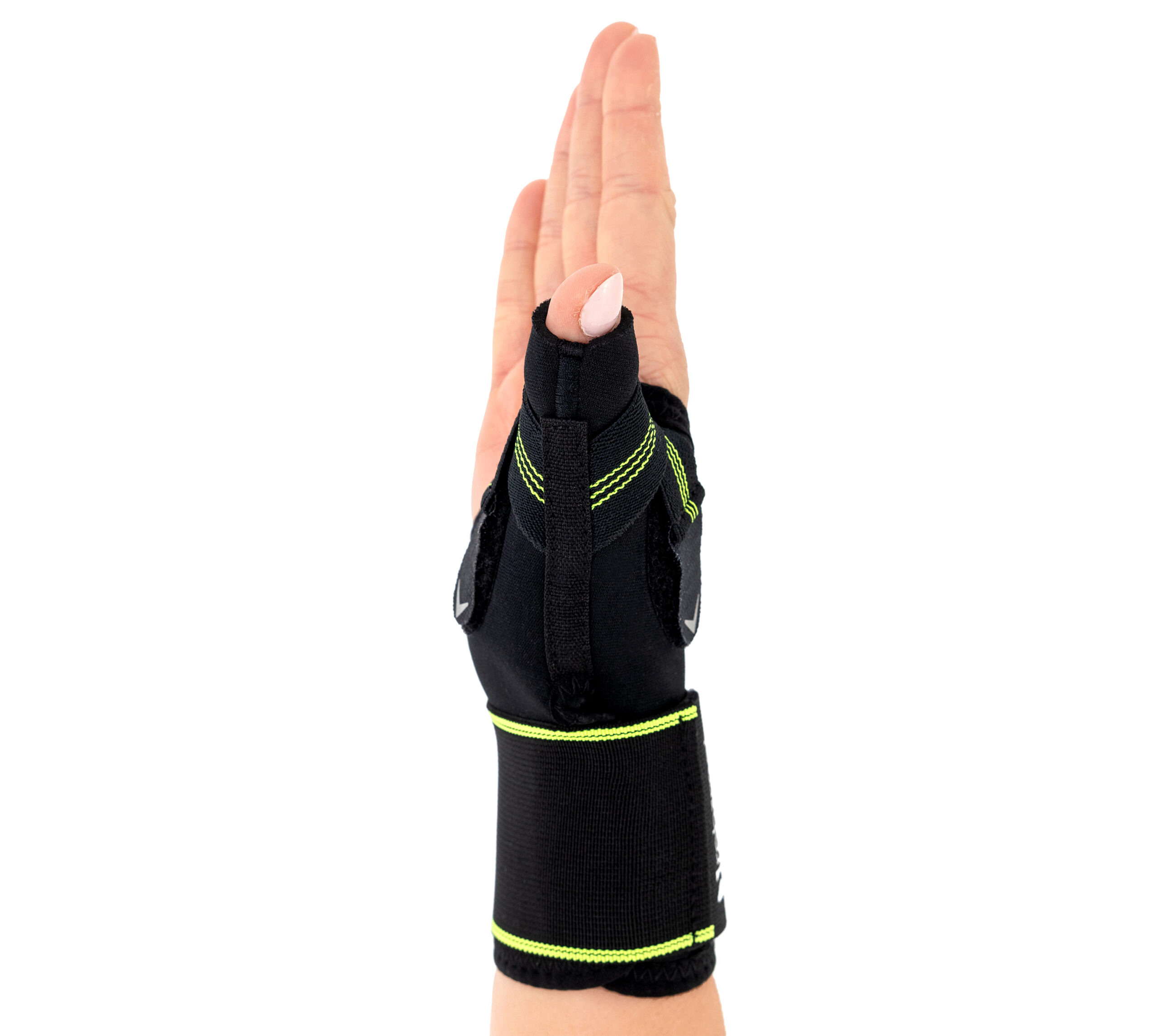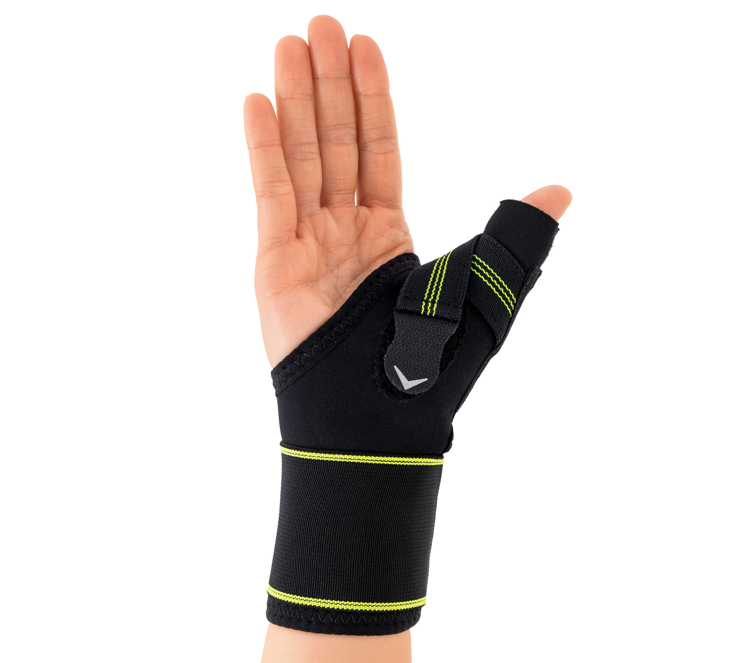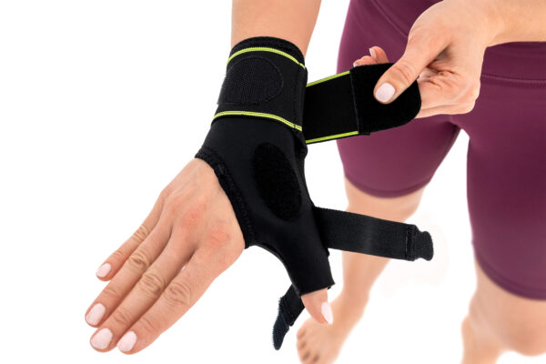 Produkt posiada specjalny elastyczny pas odwodzący kciuk i utrzymując go w pozycji neutralnej. Dzięki temu, stan zapalny więzadeł, torebek stawowych i ścięgien zostaje zredukowany, a ryzyko niekontrolowanego przywiedzenia kciuka ograniczone.