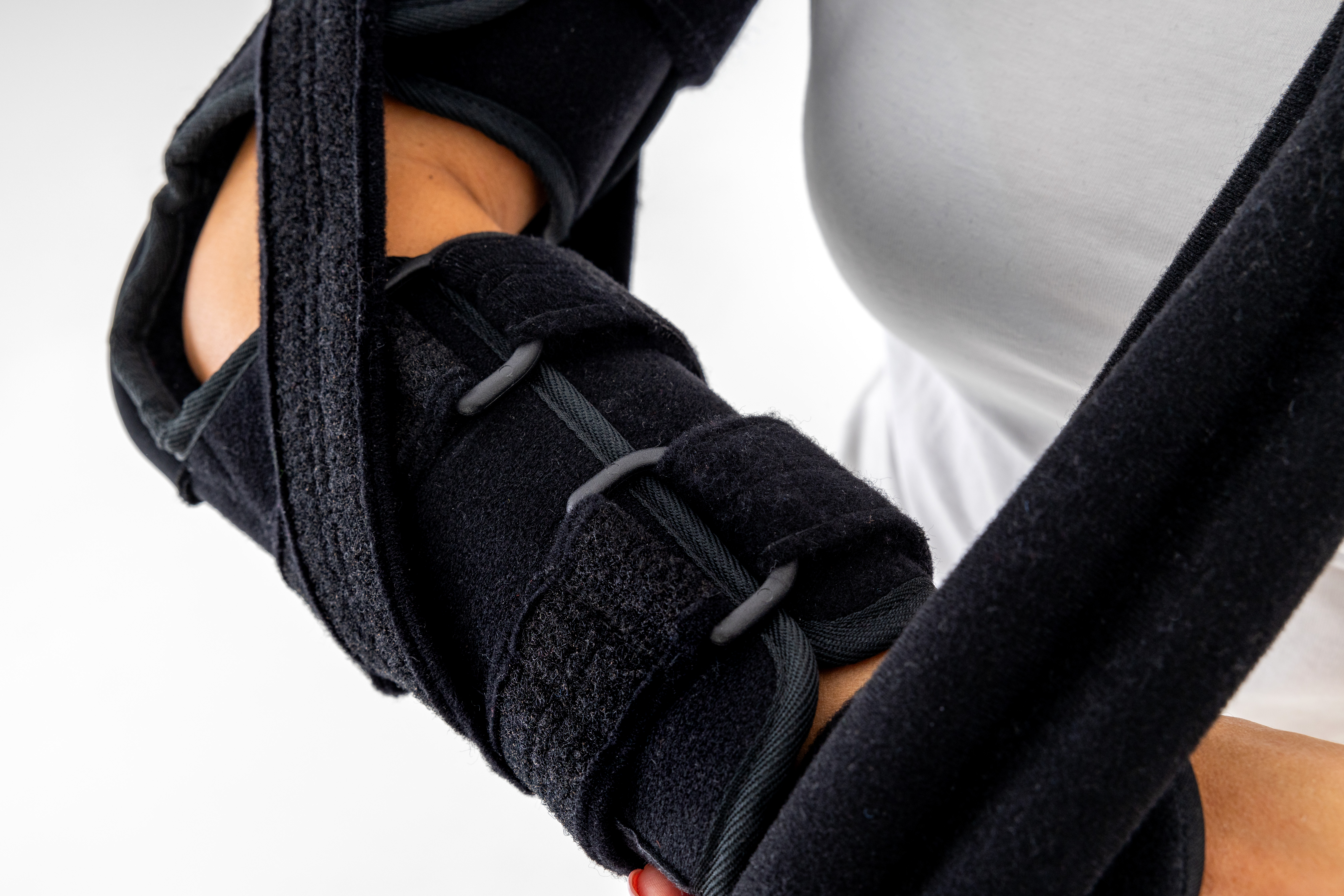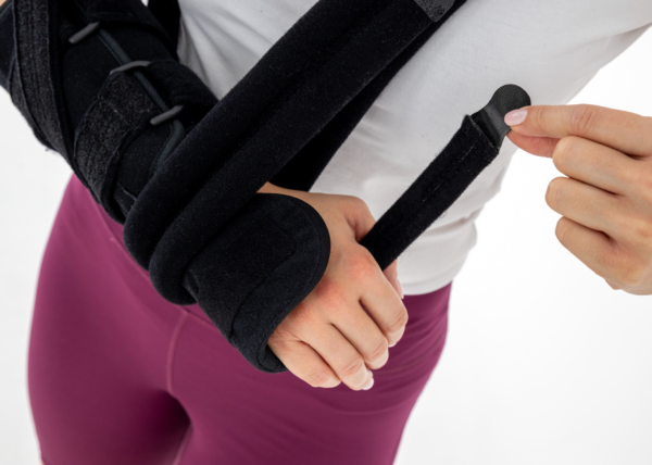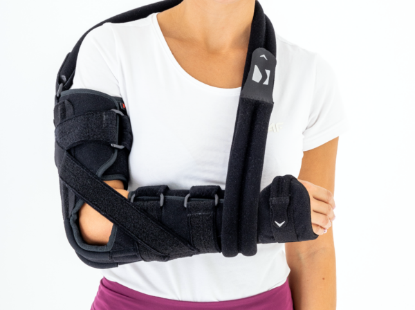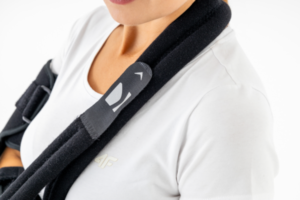 Dodatkowo, produkt został wyposażony w pas tułowia, regulowany według preferencji oraz zapewniający płynną regulację uniesienia (elewacji) przedramienia, w zależności od urazu i rekomendacji medycznych.
