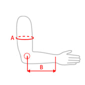 | Rozmiar | (A)Obwód ramienia | (B) Długość od nadkłykcia bocznego kości ramiennej do nadgarstka | Sposób dokonywania pomiaru |