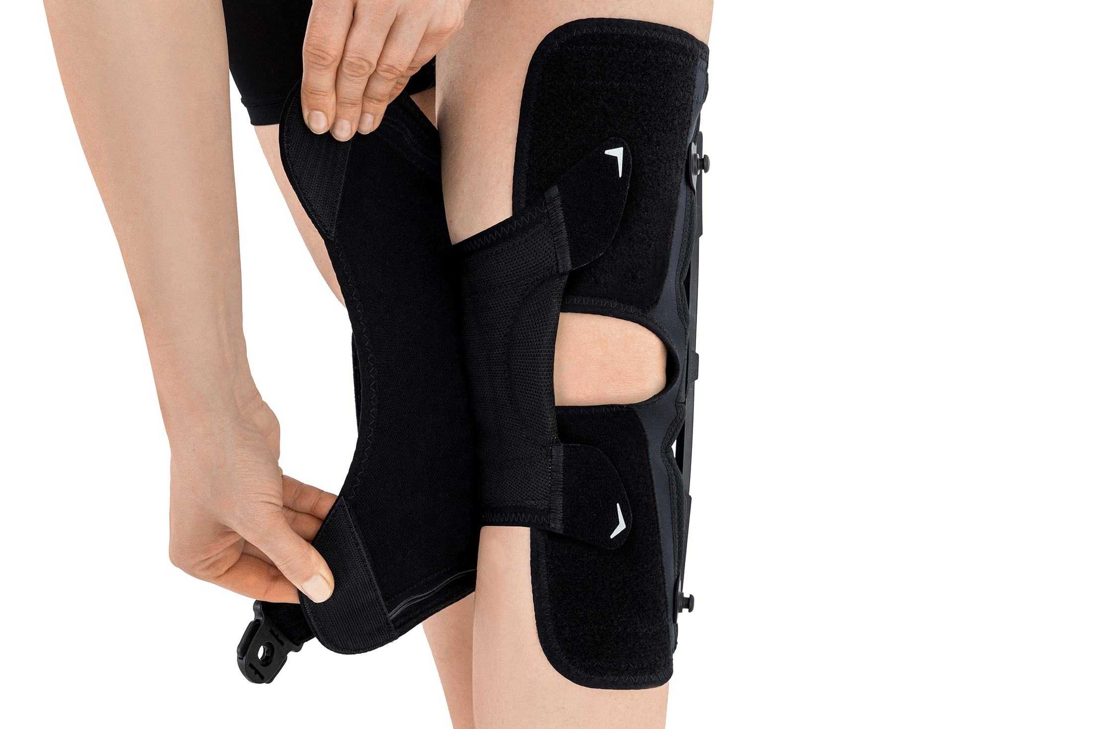 Jednoszynowa orteza kolana z dynamicznym odciążeniem spiralnym typu ATTACK PRO ma otwartą konstrukcję, co ułatwia jej zakładanie i zdejmowanie u osób z ograniczoną sprawnością manualną. Zapewnia to również regulowane dopasowanie, pozwalając użytkownikom z większymi udami lub łydkami na wygodne dopasowanie i noszenie ortezy.