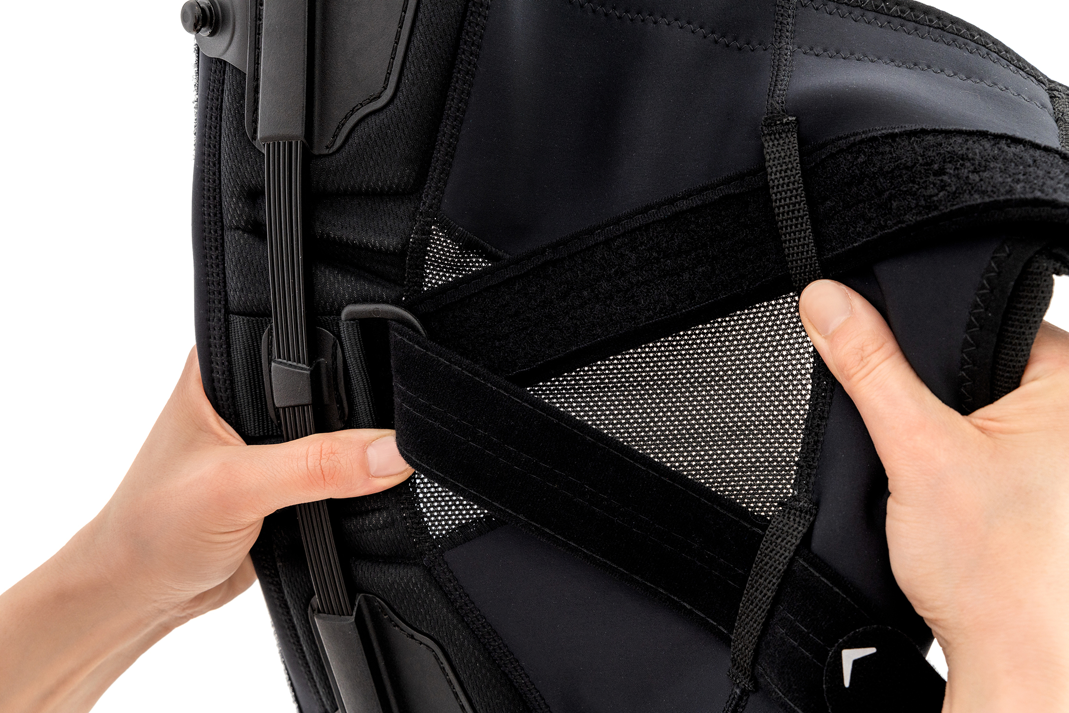 Kompresję docisku peloty można ustawiać w indywidualny sposób, według potrzeb użytkownika za pomocą taśm okołorzepkowych.