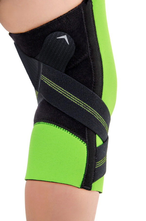 Dziecięca orteza kolana FIX-KD-07 została wykonana z cienkiego, kolorowego neoprenu, który utrzymuje stałą kompresję stawu. Elastyczne taśmy obwodowe, krzyżujące się pod kolanem, stabilizują podudzie oraz odciążają więzadło krzyżowe ACL. W ten sposób likwidują one ruch szufladkowy kolana podczas chodzenia. Napięcie pasów krzyżowych może być dowolnie regulowane według potrzeb terapeutycznych i stopnia uszkodzenia więzadła ACL. Orteza kolana FIX-KD-07 posiada zamkniętą konstrukcję i zapewnia doskonałe przyleganie wyrobu do kończyny, a tym samym pełni funkcję proprioceptywną, co jest niezmiernie ważne w przypadku uszkodzenia ACL. Ponadto, z boku ortezy zastosowano elastyczne fiszbiny, które dodatkowo stabilizują staw kolanowy. Poprzez zapewnienie stałej kompresji, nasza orteza utrzymuje temperaturę ciała, redukując ból i przyspieszając tym samym proces gojenia po uszkodzeniu tkanek miękkich. Dla łatwego i szybkiego zakładania produktu, nasza orteza kolana posiada specjalne górne uchwyty. FIX-KD-07