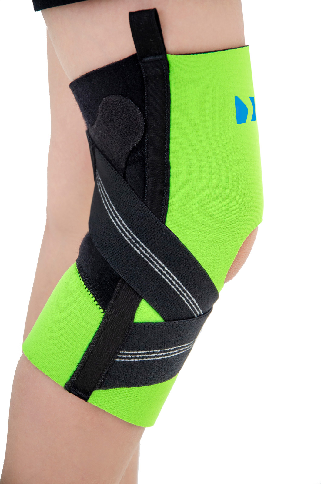 Dziecięca orteza kolana FIX-KD-07 została wykonana z cienkiego, kolorowego neoprenu, który utrzymuje stałą kompresję stawu. Elastyczne taśmy obwodowe, krzyżujące się pod kolanem, stabilizują podudzie oraz odciążają więzadło krzyżowe ACL. W ten sposób likwidują one ruch szufladkowy kolana podczas chodzenia. Napięcie pasów krzyżowych może być dowolnie regulowane według potrzeb terapeutycznych i stopnia uszkodzenia więzadła ACL. Orteza kolana FIX-KD-07 posiada zamkniętą konstrukcję i zapewnia doskonałe przyleganie wyrobu do kończyny, a tym samym pełni funkcję proprioceptywną, co jest niezmiernie ważne w przypadku uszkodzenia ACL. Ponadto, z boku ortezy zastosowano elastyczne fiszbiny, które dodatkowo stabilizują staw kolanowy. Poprzez zapewnienie stałej kompresji, nasza orteza utrzymuje temperaturę ciała, redukując ból i przyspieszając tym samym proces gojenia po uszkodzeniu tkanek miękkich. Dla łatwego i szybkiego zakładania produktu, nasza orteza kolana posiada specjalne górne uchwyty. FIX-KD-07