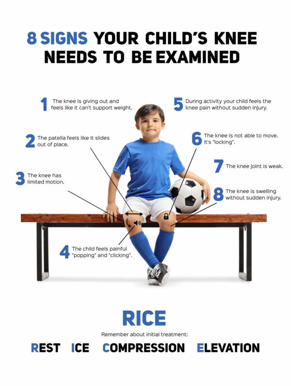 Do urazu skrętnego kolana dochodzi, gdy dziecko przekroczy fizjologiczną ruchomość stawu, a więzadła zostaną mocno naciągnięte i niekiedy naderwane. Może się to zdarzyć przy każdego typu aktywności, szczególnie gdy dziecko wykonuje obrót (rotację) tułowia i obręczy biodrowej, a stopa pozostaje nieruchomo na podłożu. Skręcenie kolana to częsta dolegliwość młodych sportowców, np. piłkarzy. Jeśli skręcenie nie jest bardzo poważne, a więzadła nie są zerwane, to dziecko zazwyczaj potrzebuje odpoczynku i leczenia zachowawczego, do którego należy zasada postępowania w urazach RICE.