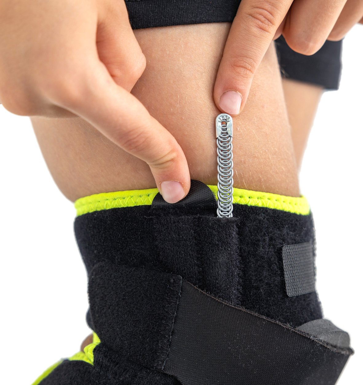 Orteza dziecięcia FIX-KD-34 posiada zapięcia rzepowe, które zapewniają płynną regulację obwodową. Dzięki takiemu rozwiązaniu, orteza może być stosowana zarówno w stanie ostrym, gdy widoczny jest obrzęk i wysięk, jak również w trakcie leczenia zachowawczego i profilaktyki.