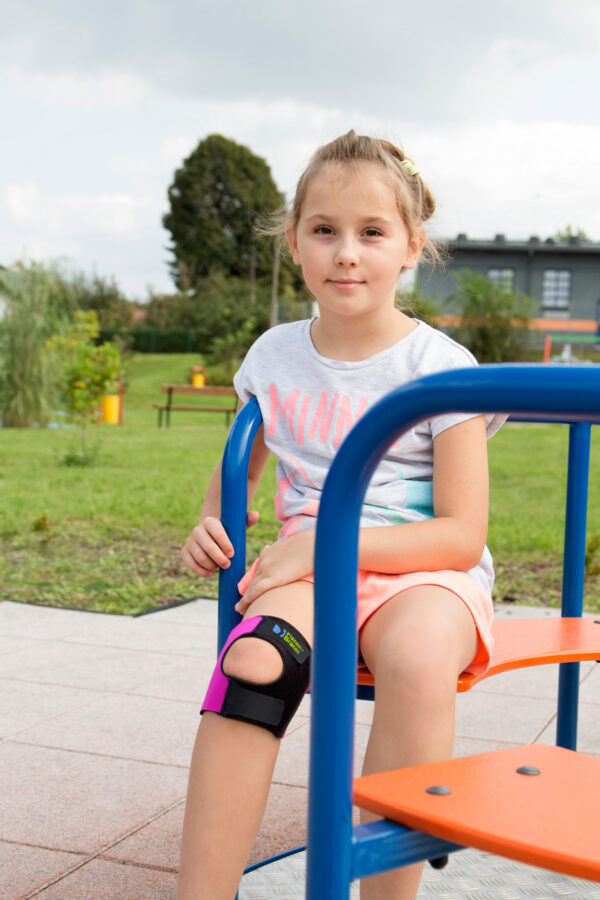 Dziecięca orteza rzepki FIX-KD-04 została wykonana z cienkiego, kolorowego ActivePren™ oraz UniPren™, które utrzymują stałą kompresję stawu.