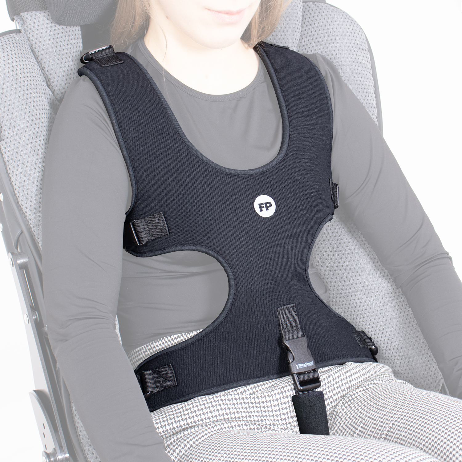 DYNAMICZNA 7-PUNKTOWA KAMIZELKA TUŁOWIA FlexPoint® umożliwia właściwe ustawienie tułowia w pozycji siedzącej osób dorosłych ze specjalnymi potrzebami o podłożu neurologicznym.