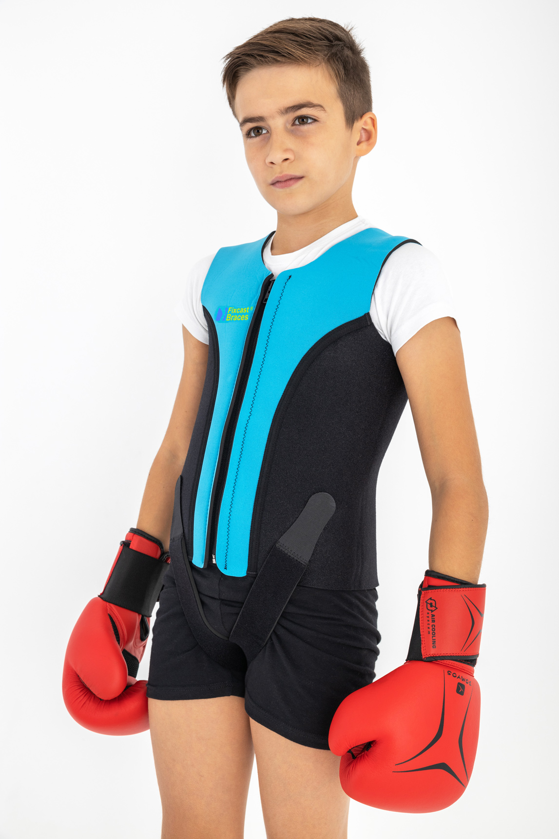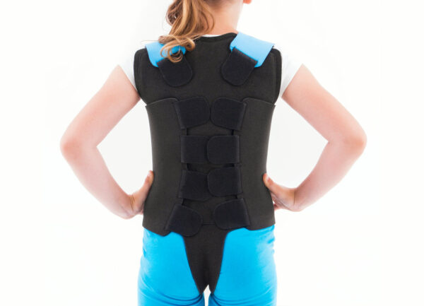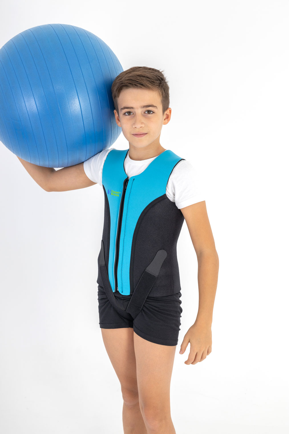W opcji „średniej stabilizacji” tylny panel również wykonany jest z cienkiej wentylowanej pianki neoprenowej UniPren™, ale ponadto posiada naszyte tunele, w których można umieścić stalki aluminiowe. Stalki te, mogą być dowolnie kształtowane według anatomicznych kształtów małego pacjenta. Kamizelka zapewnia niezbędną kompresję, zwiększając tym samym czucie propriocepcji, a także dzięki umieszczonym stalkom, stabilizuje i odciąża mięśnie przykręgosłupowe.