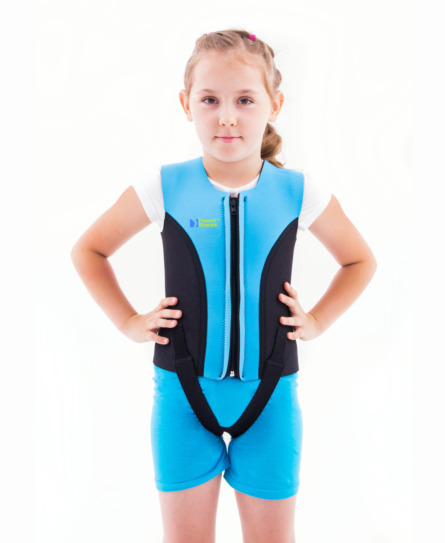Kamizelka składa się z 2 oddzielnych części. Pierwsza, przednia, część jest zawsze taka sama i dopinany jest do niej tylny panel kamizelki, który jest różny w zależności od wybranego poziomu stabilizacji. Przednia część kamizelki wyposażona w zamek błyskawiczny, ułatwiający jej zakładanie oraz pasy Velcro i rzepowe zakończenia: paski barkowe i krocza oraz boczne zapięcia. Takie rozwiązanie zapewnia szeroki zakres regulacji obwodowej produktu i jego perfekcyjne dopasowanie do użytkownika.