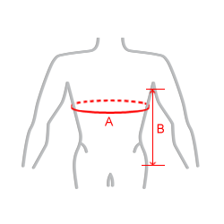 | Rozmiar | Obwód tułowia (A) | Długość od krętarza większego do pachy (B) | Sposób dokonywania pomiaru |