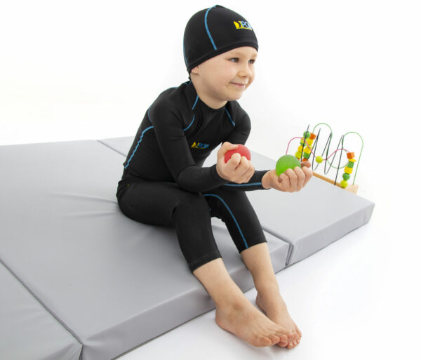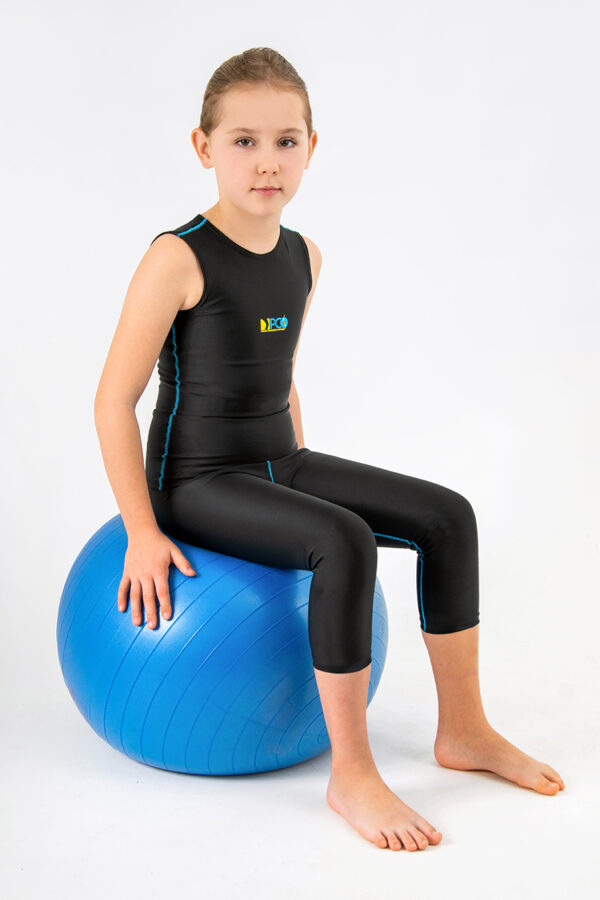 Orteza kompresyjna bioder i kończyn dolnych PCO-L-02 ma za zadanie zwiększyć stabilizację i kontrolę postawy dzieci z zaburzeniami neurologicznymi. Wspomaga pracę dolnych partii ciała i uzupełnia deficyty sensoryczne małego pacjenta.