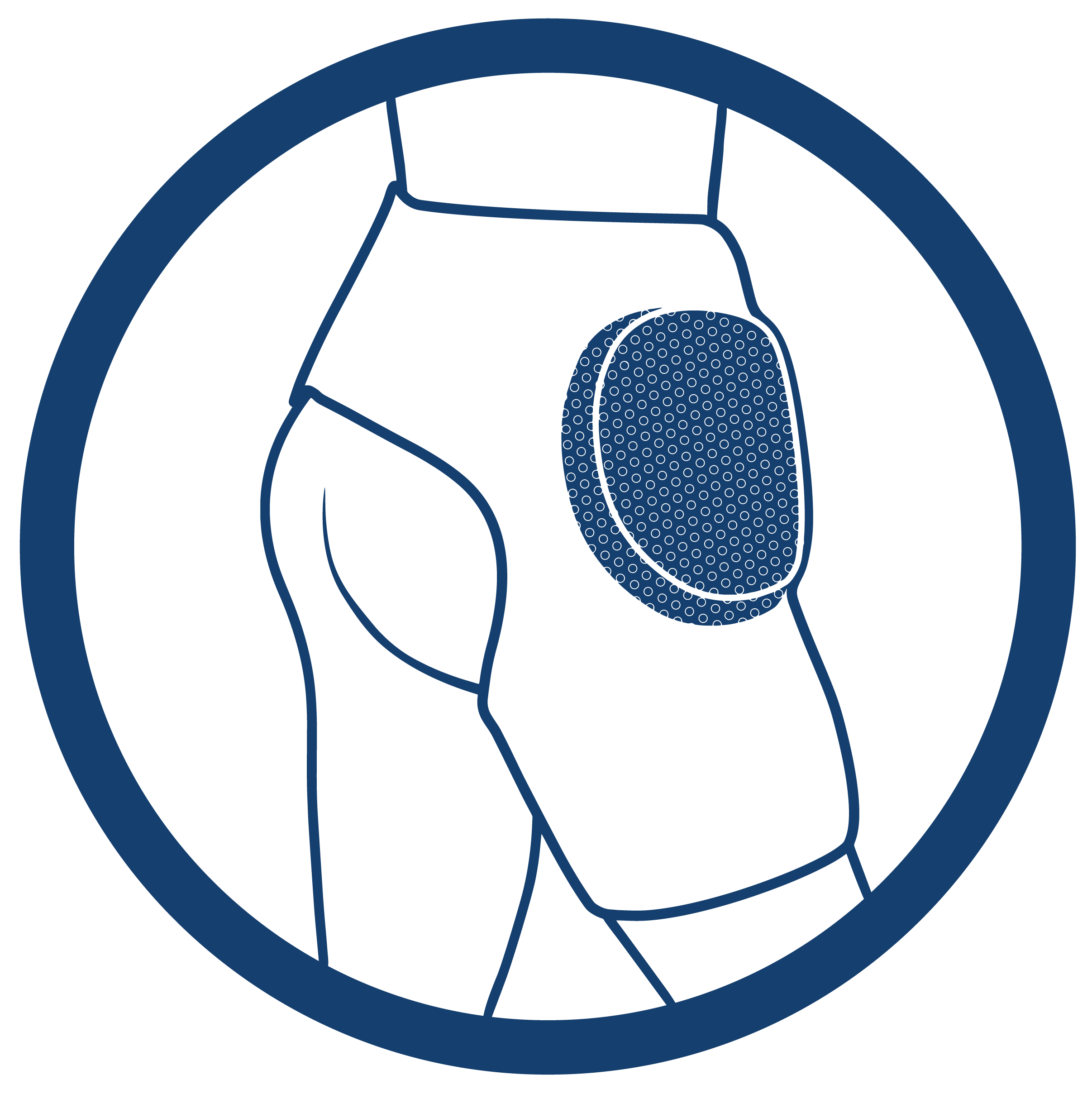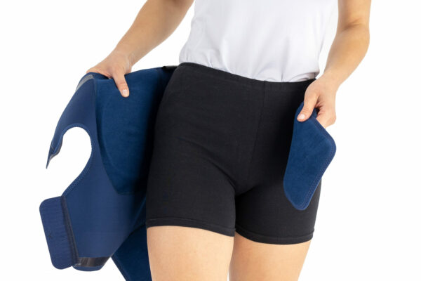 Wewnątrz ortezy zamieszczona została osłonka, wykonana z komfortowej pianki odciążającej. Osłona ta ma za zadanie skutecznie chronić okolice krętarza kości udowej przed urazami mechanicznymi (upadkami, uderzeniami). Spełnia ona również rolę terapeutyczną, utrzymując stałą temperaturę stawu i zmniejszając jego dolegliwości bólowe.
