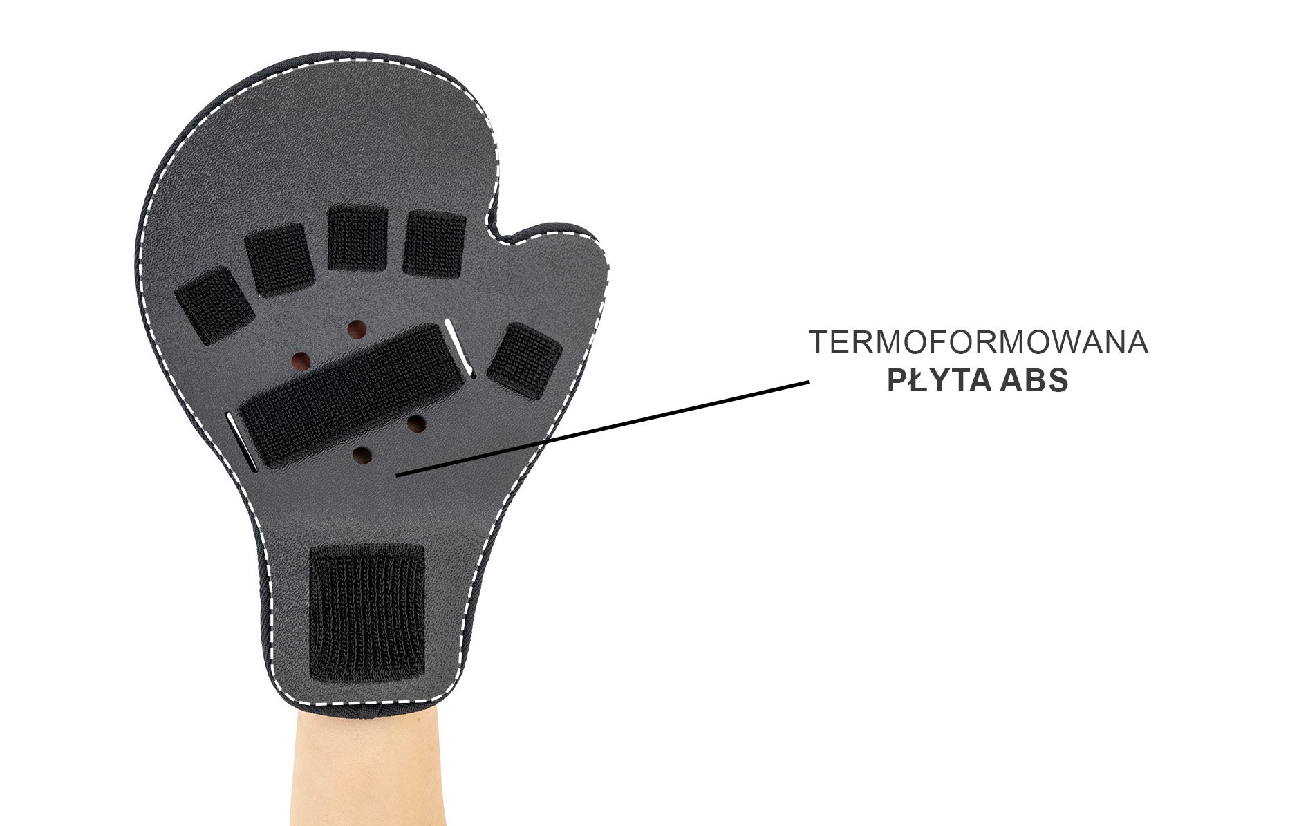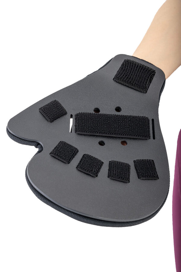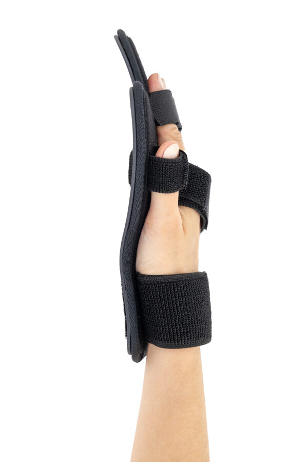 Płyta jest anatomicznie wyprofilowana i utrzymuje rękę w wyproście w neutralnej pozycji.