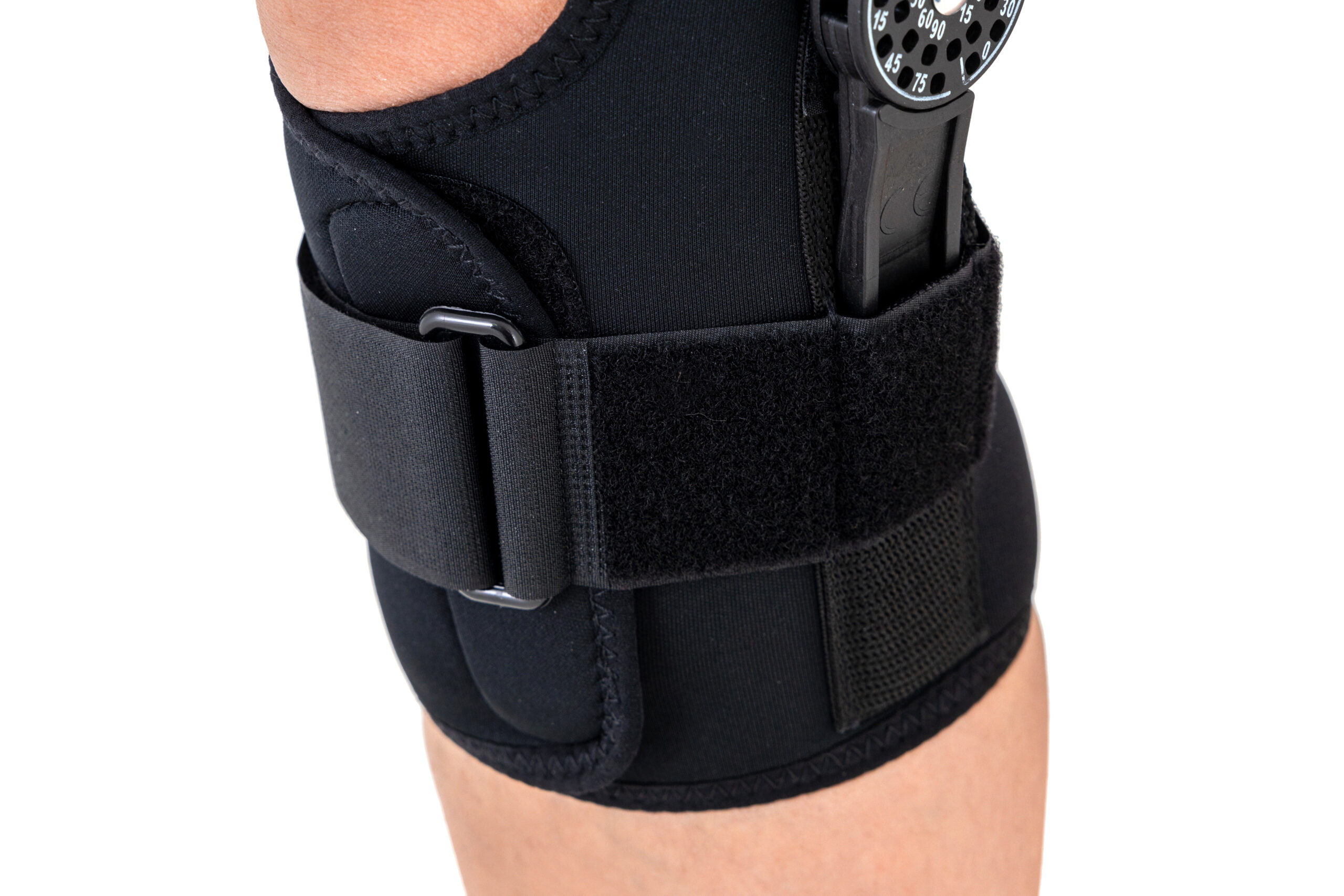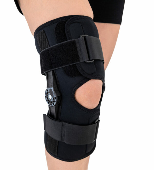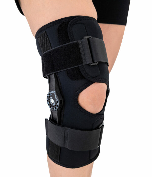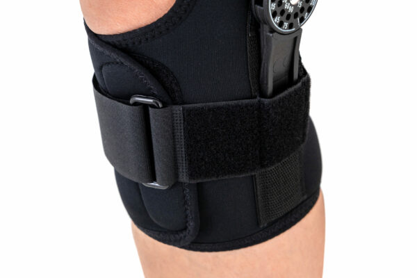 Boczne szyny z zegarem pozwalają na zmniejszenie lub zwiększenie zakresu ruchomości stawu, np. w przypadku uszkodzenia więzadeł, w zależności od zaleceń terapeutycznych.