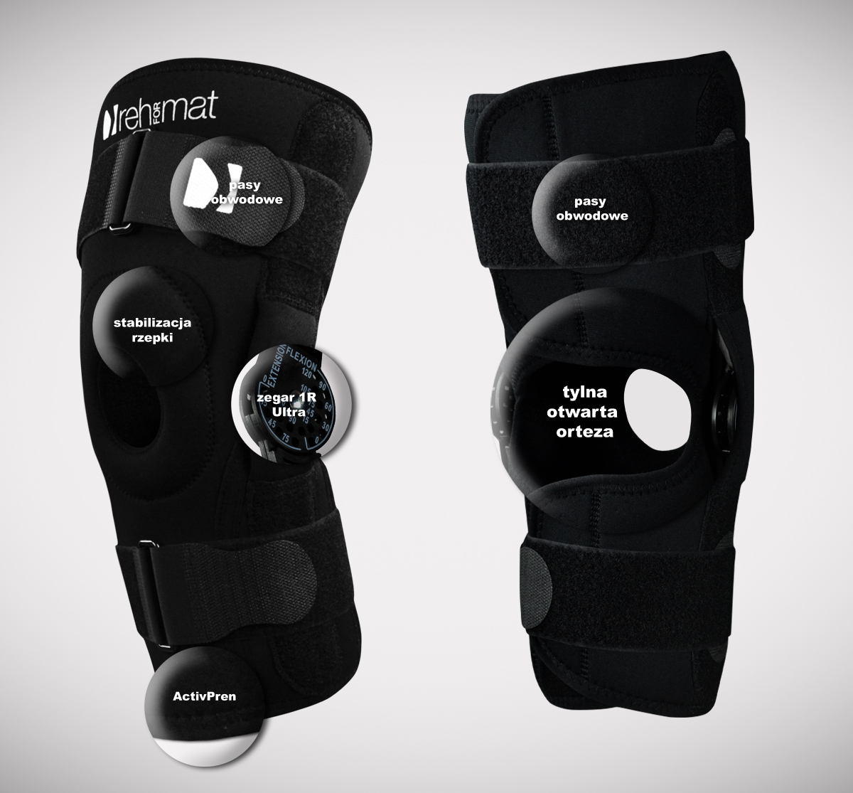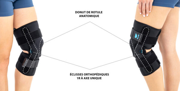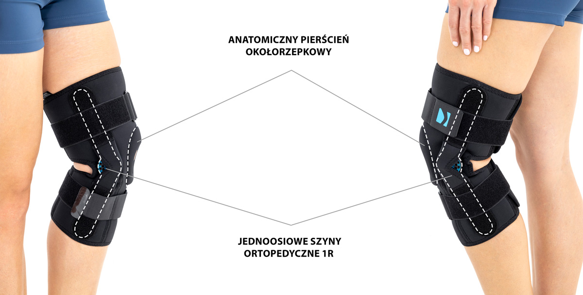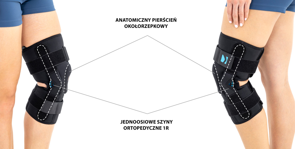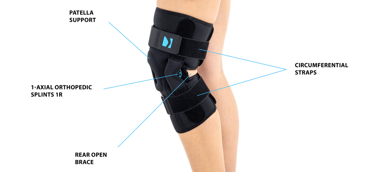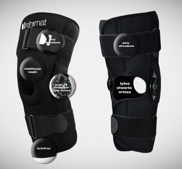 Konstrukcja ortezy jest projektem unikatowym, łączącym w sobie zarówno fukcję ortez otwartych – łatwość zakładania wyrobu poprzez brak konieczności wciągania ortezy przez stopę, jak również zamkniętych – pełna stabilizacja rzepki i stawu kolanowego. W tym celu w wyrobie zainstalowano anatomicznie ukształtowany pierścień rzepki.
