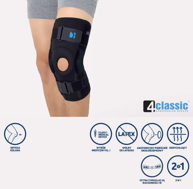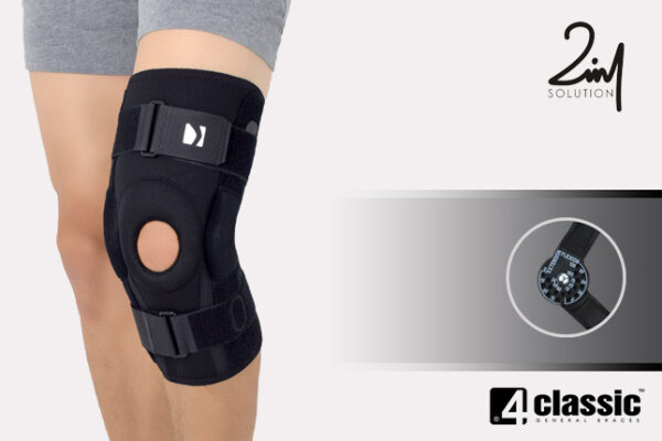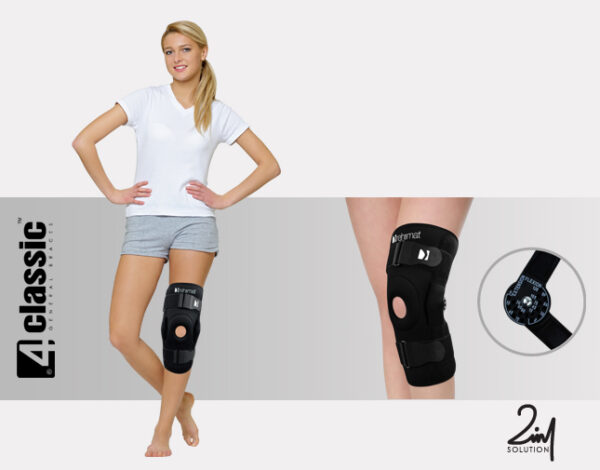 2in1 SOLUTION to unikatowy projekt łączący w sobie zarówno funkcje ortez otwartych – łatwość zakładania wyrobu poprzez brak konieczności wciągania ortezy przez stopę, jak również zamkniętych – perfekcyjna stabilizacja rzepki oraz stawu kolanowego. W tym celu wyroby te zostały wyposażone w anatomicznie ukształtowany pierścień rzepki. Dodatkowym atutem jest unikatowy design ortez, który zawiera otwarty dół podkolanowy, co dodatkowo zwiększa komfort ich użytkowania. Takie rozwiązanie pozwala na odprowadzanie potu od kończyny, co pozwala na swobodne i nieuciążliwe stosowanie ortezy.