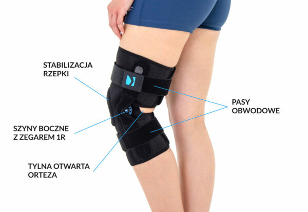 TYLNA OTWARTA ORTEZA STAWU KOLANOWEGO Z REGULACJĄ ZAKRESU RUCHOMOŚCI CO 15 STOPNI