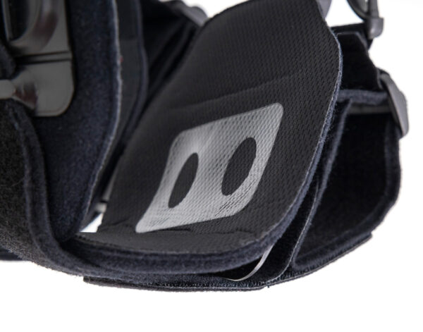 Ponadto boczne i przyśrodkowe poduszki wyposażone w antymigracyjny system silikonowy, zapobiegający rotowaniu i zsuwaniu się ortezy z kończyny. Aparat łatwo dopasowuje się do kończyny nawet u osób z dysproporcją obwodów uda i podudzia lub przy znacznym pogrubieniu obrysów stawu kolanowego. Pasy obwodowe zostały wyposażone w odpinane zapięcia, umożliwiające dopasowanie ich do wymiarów kończyny poprzez odcięcie zbędnej ich części.