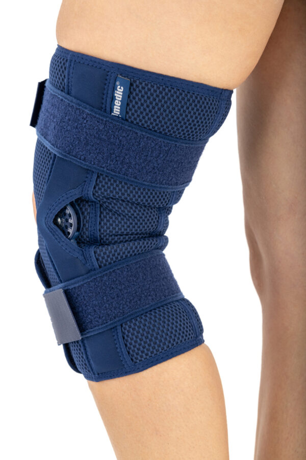 Otwarta orteza kolana z regulacją zakresu ruchu co 15° wyposażona jest w szyny węglowe z zegarami i systemem pasów VELCRO, zapewniając doskonałą stabilizację stawu. Układ szyn w kształcie litery X gwarantuje idealne dopasowanie, a perforowana konstrukcja poprawia wentylację. Produkt ułatwia rehabilitację i jest wygodny dla osób starszych i otyłych.