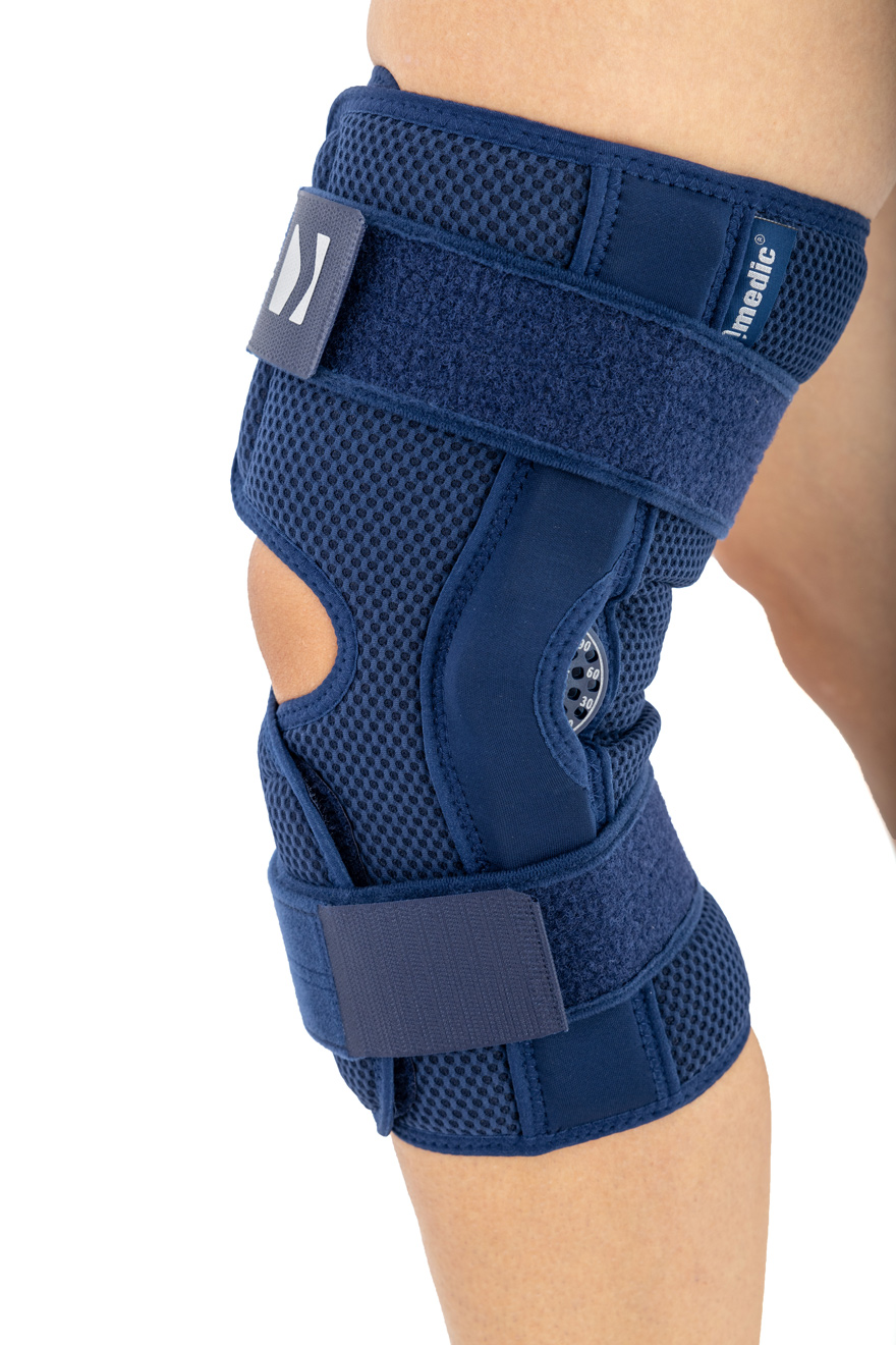 OTWARTA ORTEZA STAWU KOLANOWEGO Z REGULACJĄ ZAKRESU RUCHOMOŚCI CO 15 STOPNI I OSŁONĄ ZEGARA