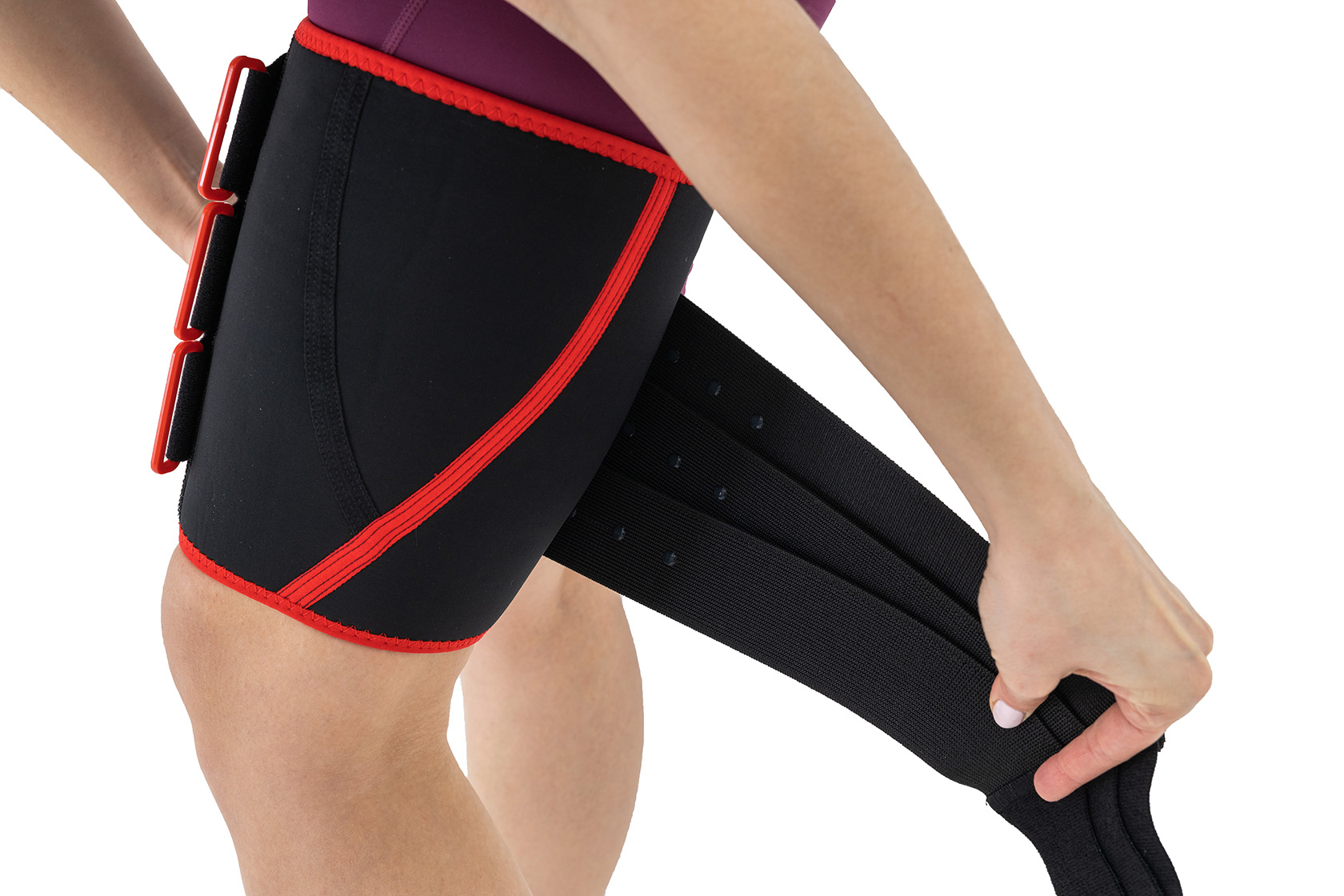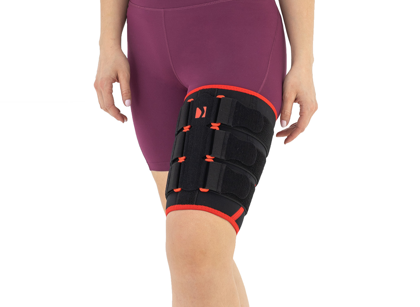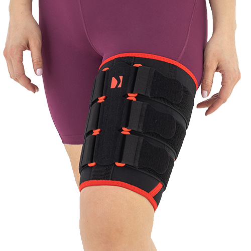 Do typowego uszkodzenia mięśni, wchodzących w skład grupy tylnej uda, dochodzi podczas sprintu, w końcowej fazie wymachu kończyny, kiedy to mięsień przechodzi z pracy ekscentrycznej w koncentryczną (staw kolanowy zgięty do ok. 30°). Wśród innych aktywności mogących powodować uraz tej grupy mięśniowej, wymienia się gwałtowne zahamowania, zmiany tempa, a także kopnięcia. Badania wskazują, że 69–80% urazów grupy tylnej mięśni uda, dotyczy mięśnia dwugłowego uda. Najczęściej nadrywana jest głowa długa w miejscu przejścia brzuśca w ścięgno. Stabilizacja uda naszą ortezą AS-U-01 dopełnia zabezpieczenie urazu, a jej aktywny system kompresyjny pozwala prawidłowo stopniować ucisk. Naciągnięcie mięśni jest dość bolesne, jednak zazwyczaj szybko się leczy. Orteza uda i pachwiny AS-U-01 pozwala również profilaktycznie zabezpieczyć kończynę przed urazem. Orteza AS-U-01 została wykonana w formie anatomicznego rękawa z systemem poliamidowych klamerek. Przez klamry przechodzą elastyczne taśmy obwodowe z funkcją samoszczepną oraz zapięcia Velcro pozwalające na właściwe ustawienie kompresji wyrobu. Dzięki potrójnemu systemowi kompresyjnemu, w różnych częściach ortezy można ustawić różny ucisk na udo pacjenta, najbardziej odpowiedni dla jego schorzenia. Orteza została wykonana z surowca ActivePren™. Anatomiczny kształt ortezy pozwala na jej użytkowanie zarówno na prawą jak i lewą nogę. Na taśmach został umieszczony silikon antymigracyjny zapobiegający przesuwaniu się wyrobu podczas użytkowania.