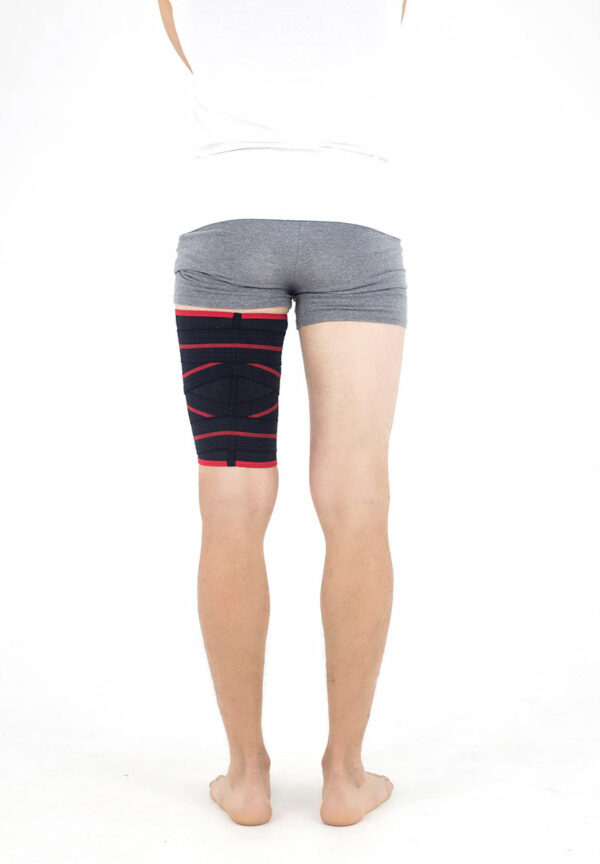 Jest to anatomicznie ukształtowana opaska uda wyposażona w potrójny system taśm kompresyjnych wyposażonych w zapiecia Velcro.