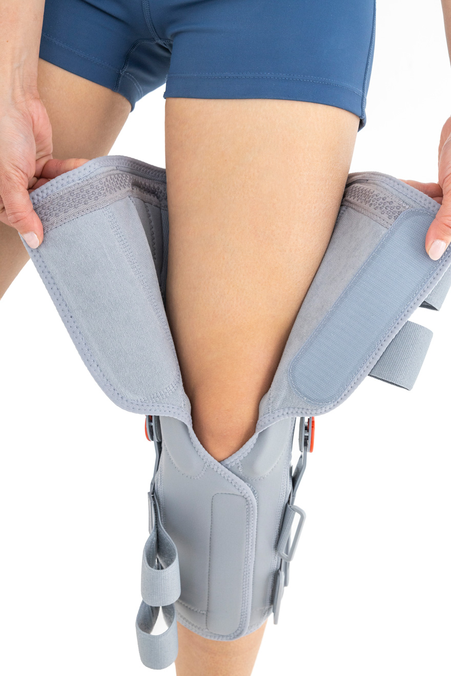 LEKKA OTWARTA ORTEZA NA GOLEŃ I UDO Z REGULACJĄ ZAKRESU RUCHOMOŚCI CO 15 STOPNI