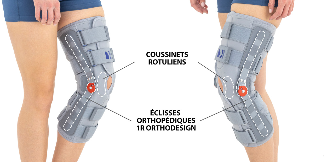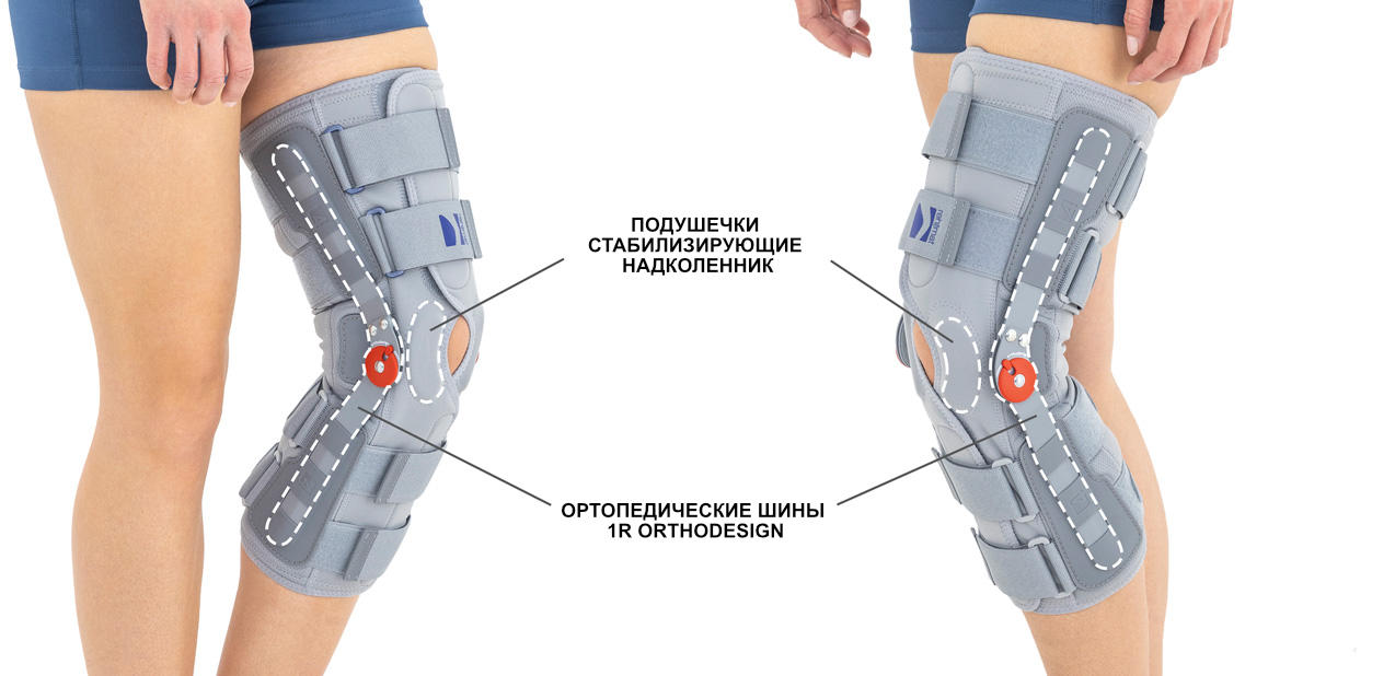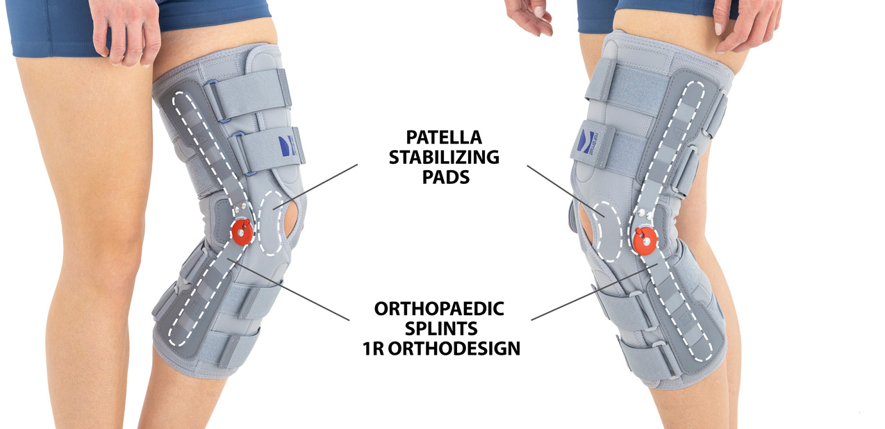 Orteza zapewnia doskonałą stabilizację boczną dzięki dwóm szynom z zegarem 1R umożliwiającym regulację kąta zgięcia i wyprostu co 15 stopni. Zegar ten pozwala na zwalczanie przykurczów w stawie oraz biernie wspomaga proces rehabilitacji.
