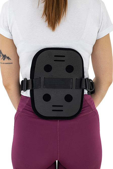 Tył pasa to termoformowana lekka pelota, która stanowi doskonały punkt podparcia i ułatwia użytkownikowi utrzymanie wyprostowanej postawy w trakcie chodu. Pelota posiada możliwość ustawienia jej w pozycji: poziomej – stabilizacja lędźwiowa, oraz pionowej – stabilizacja lędźwiowo-piersiowa.