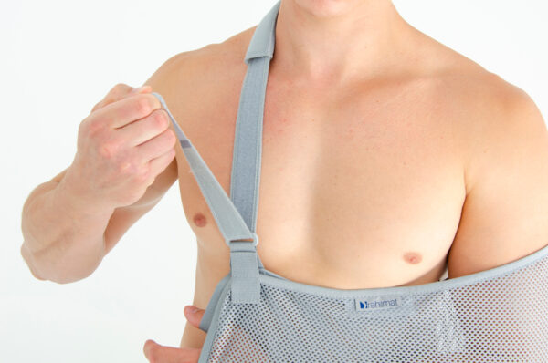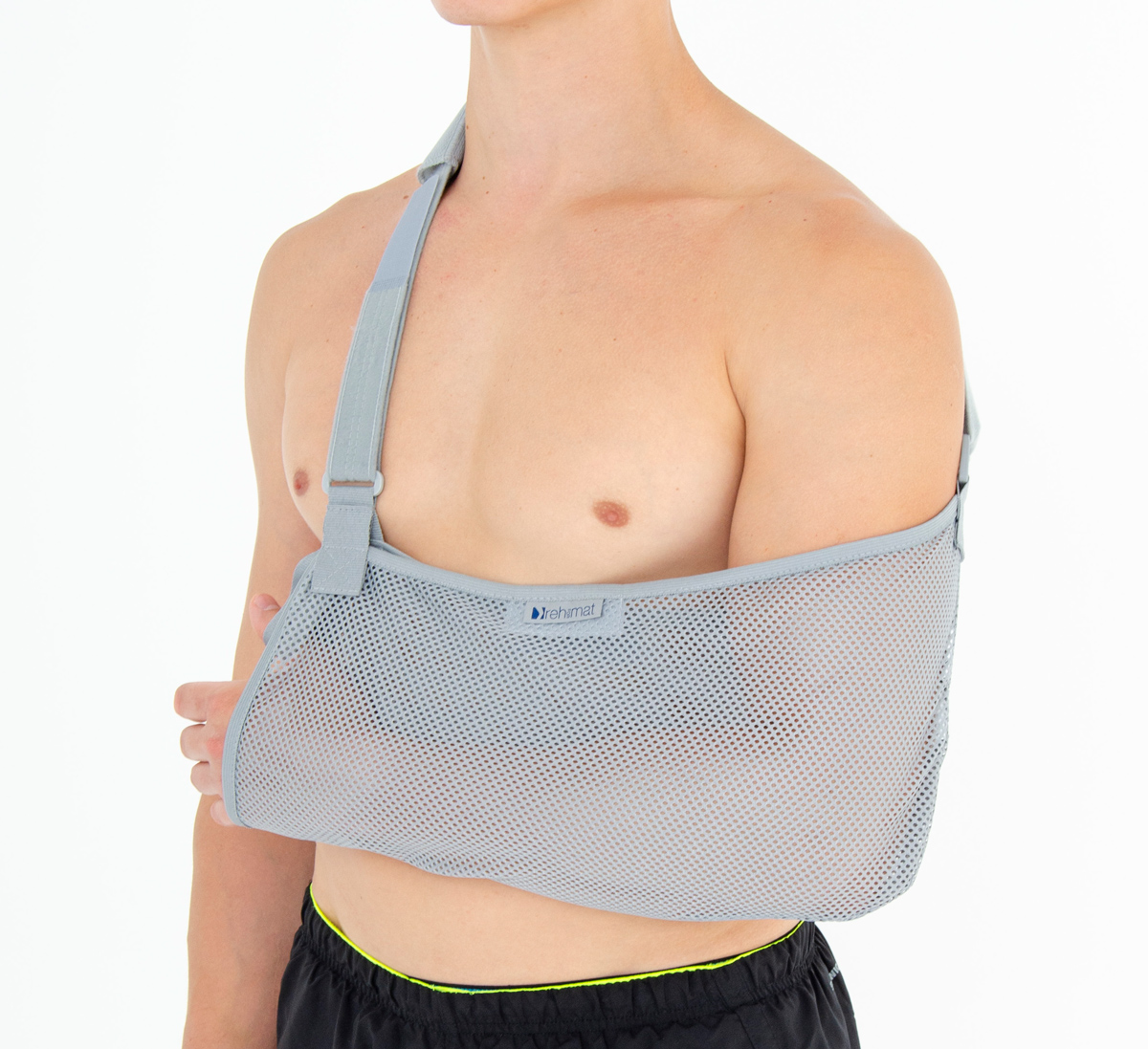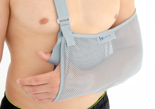 Orteza AM-SOB-03 zapewnia unieruchomienie oraz podtrzymanie kończyny górnej. Kształt wyrobu oraz podział rozmiarowy umożliwiają idealne dopasowanie do ciała pacjenta. Wyrób posiada funkcję obustronnego noszenia, co pozwala na stosowanie go zarówno na prawe jak i lewe ramię. Układ podtrzymywania kończyny jest mocowany za pomocą regulowanej taśmy naramiennej, umożliwiającej precyzyjne ustawienie kończyny we właściwej wysokości. Szeroki pas podtrzymujący zapewnia równomierne rozłożenie ciężaru na całej długości pleców.