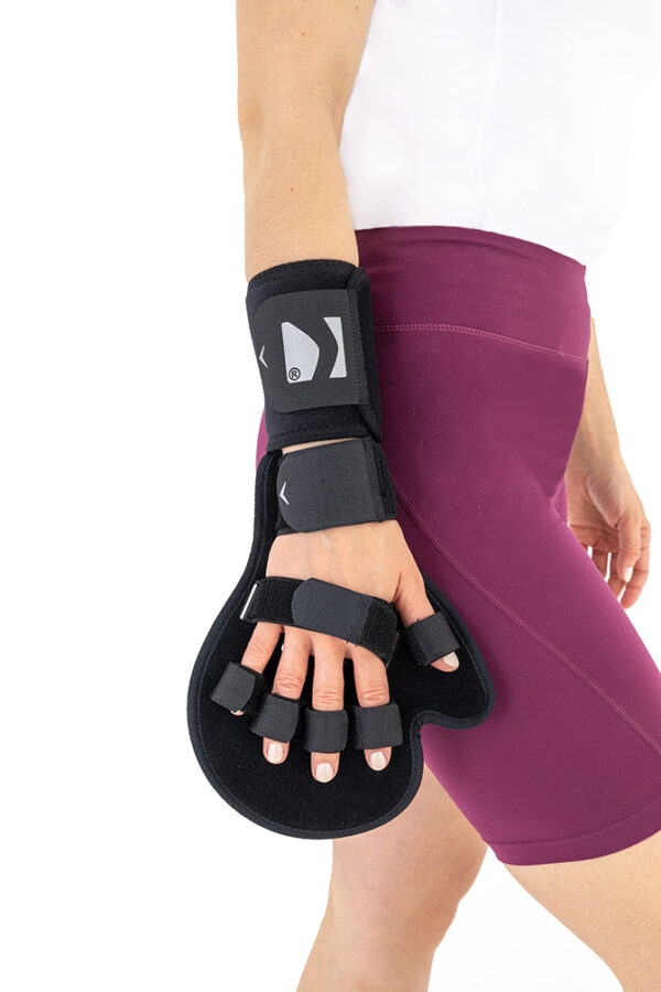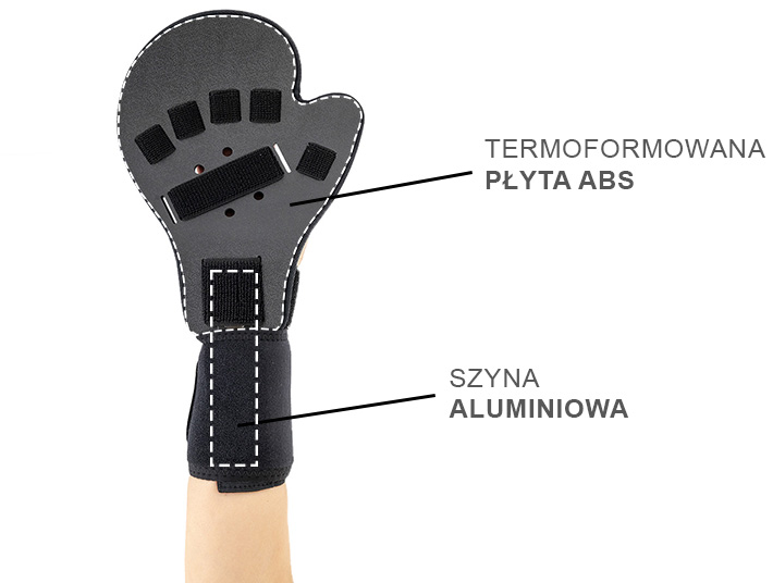 Płyta jest anatomicznie wyprofilowana i utrzymuje rękę w wyproście w neutralnej pozycji.