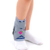 Nasza dziecięca orteza AM-OSS-03 posiada sznurowany system zapinania, który w górnej części został wyposażony w haczyki obuwnicze. Takie rozwiązanie ułatwia dziecku szybkie, samodzielne zakładanie ortezy, pozwala na regulowanie poziomu jej kompresji i stabilizacji. Górna część ortezy posiada szeroki pas obwodowy, który dodatkowo pozycjonuje produkt na nodze oraz zapewnia stabilizację, nie tylko stawu skokowego dolnego, ale również górnego. Jest to niezmiernie ważne w przypadku wystąpienia urazu skrętnego stawu, zwichnięcia lub przewlekłej niestabilności kostki.
