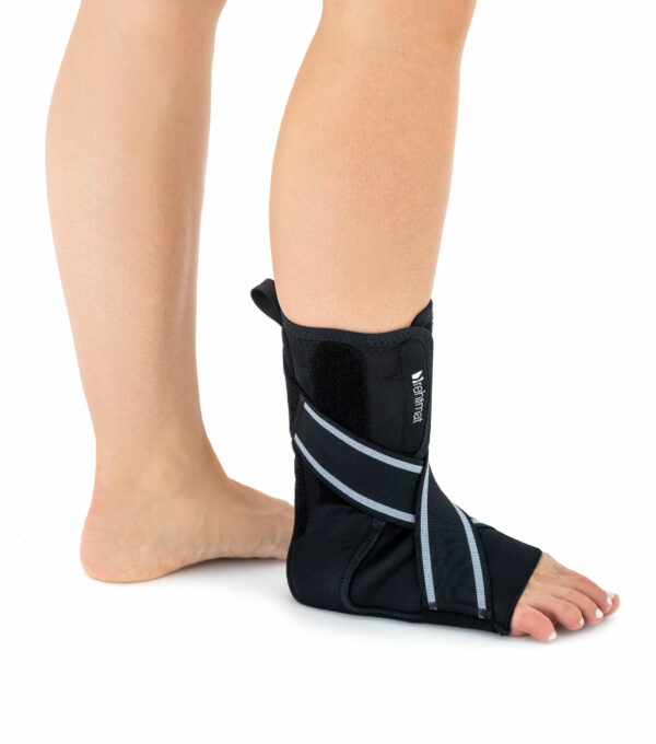 Orteza wspomaga podnoszenie stopy i poprawia jej stawianie. Za pomocą specjalnych podciągów pobudza aktywność dźwigacza stopy i zwiększa zasięg kroku.