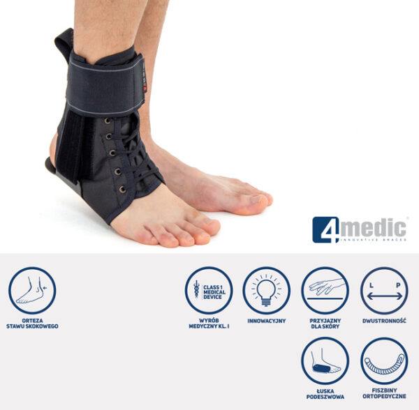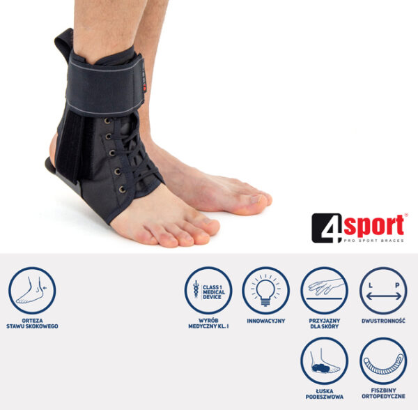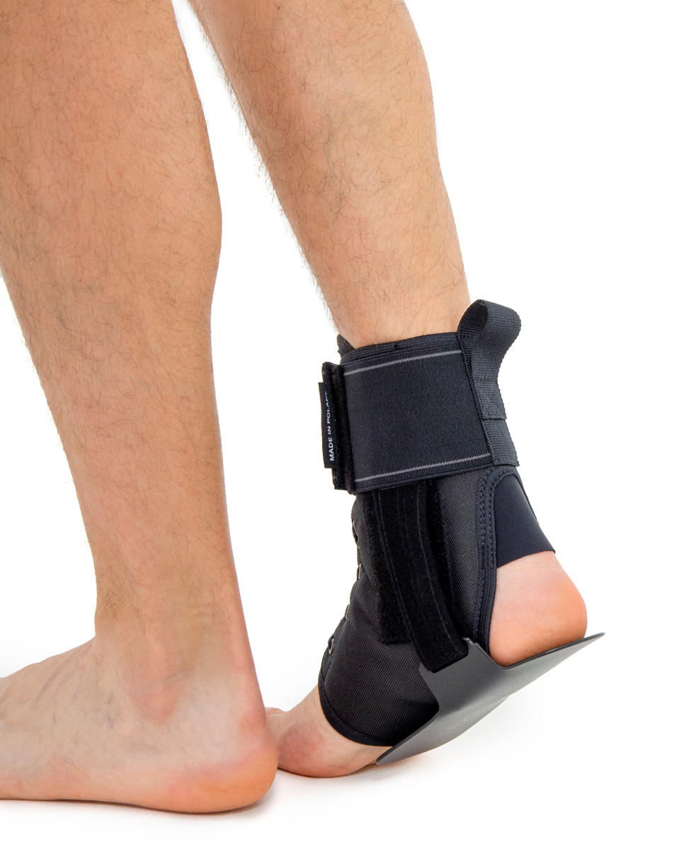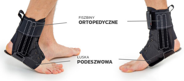 Dodatkowo, orteza posiada szeroki pas obwodowy doskonale stabilizujący staw skokowy górny, ale nie ograniczający jego fizjologicznej ruchomości.