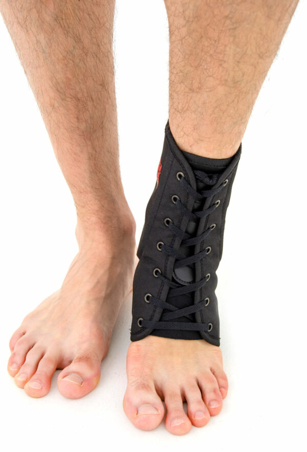 - Doskonała stabilizacja – dzięki zastosowaniu usztywnień bocznych w postaci fiszbin ortopedycznych oraz sznurowadeł przednich, orteza w sposób doskonały stabilizuje cały staw skokowy i stopę.