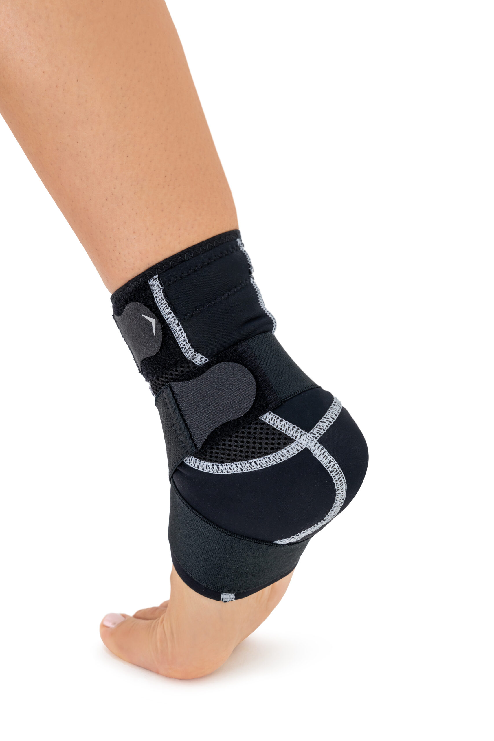 Stabilizuje staw skokowy i stęp; poprzez utrzymywanie stabilnej temperatury i elastyczny ucisk łagodzi dolegliwości bólowe, ma działanie zmniejszające obrzęki, ułatwia wchłanianie wysięków i krwiaków