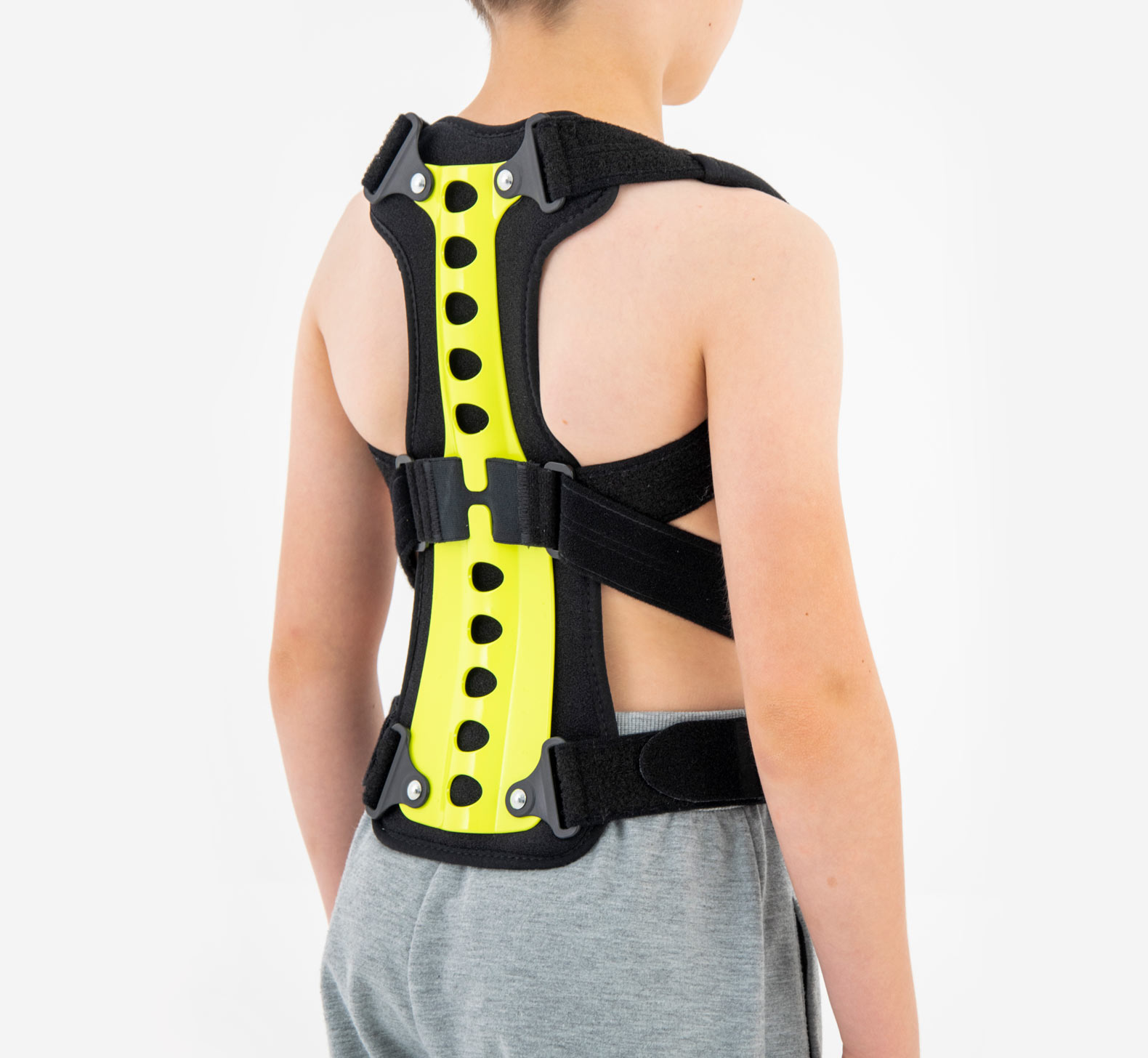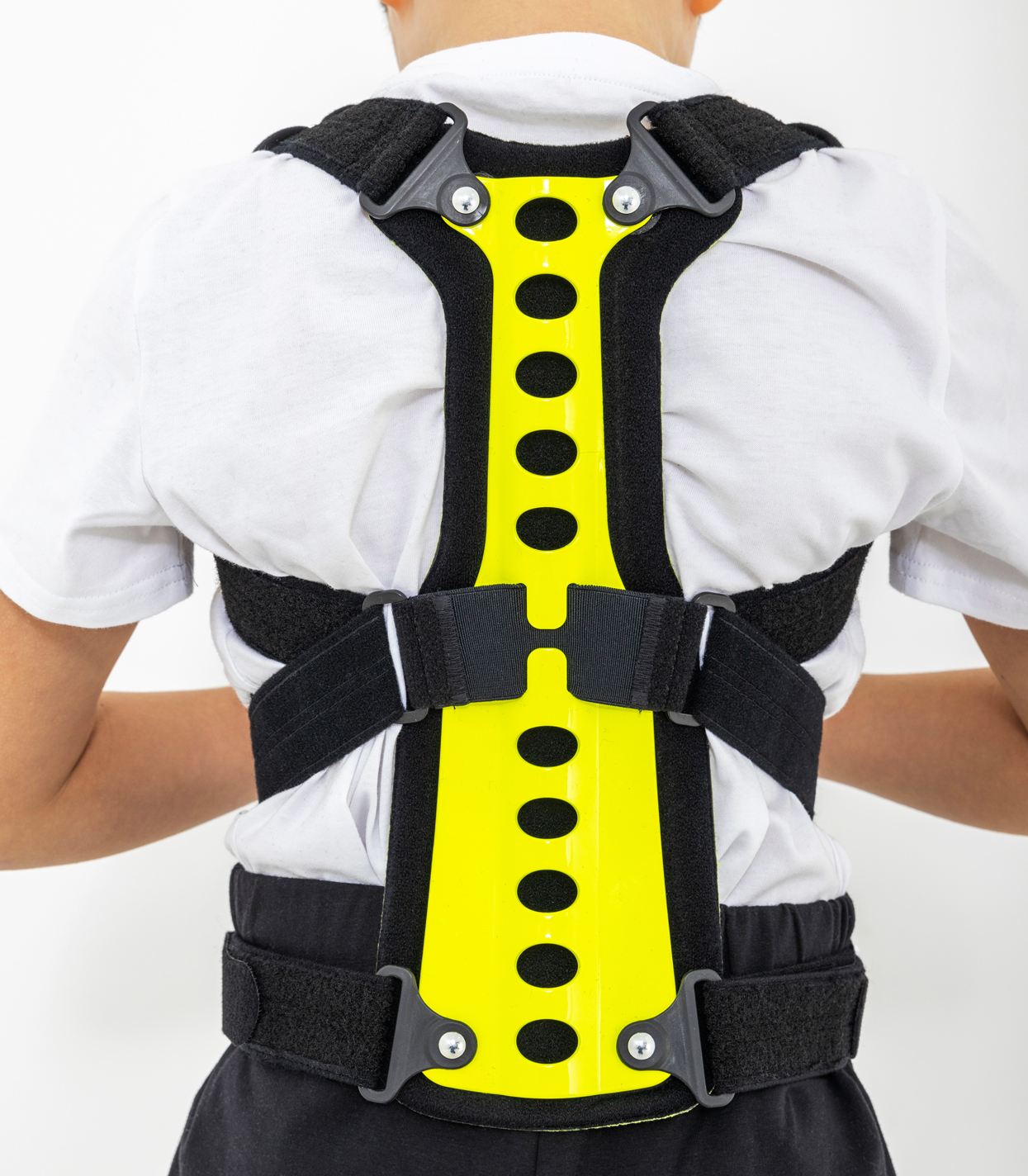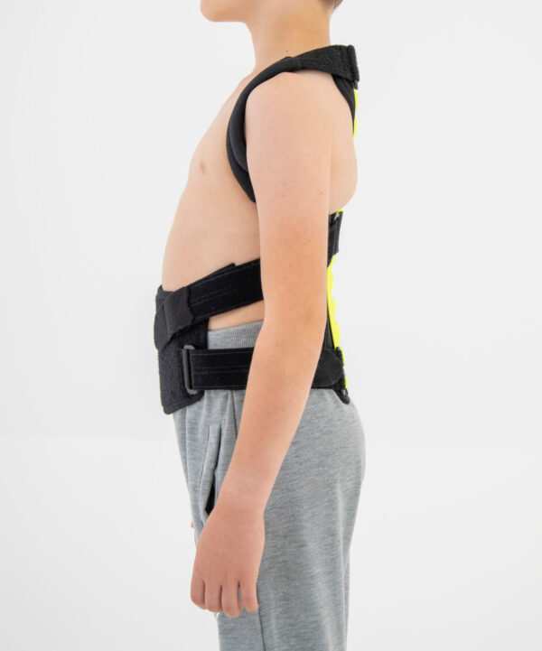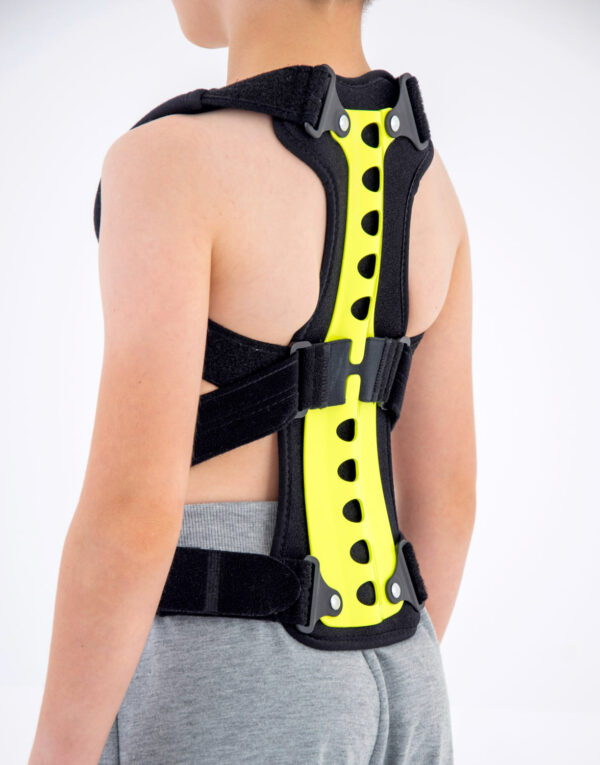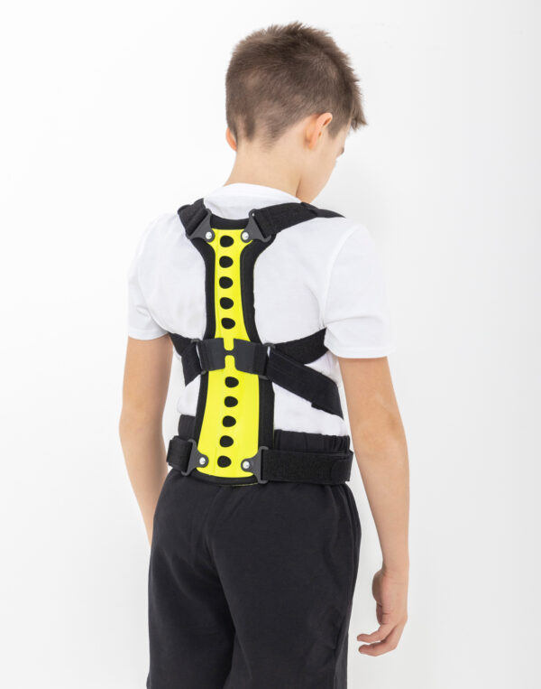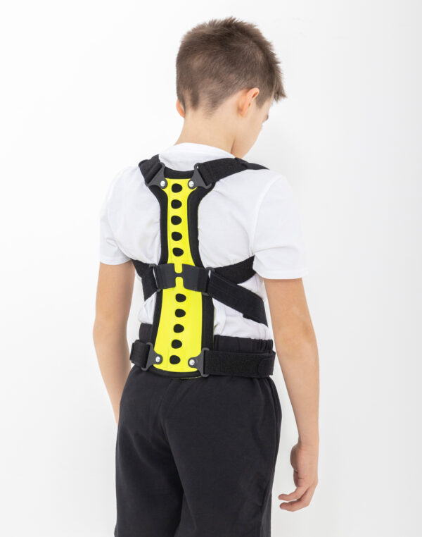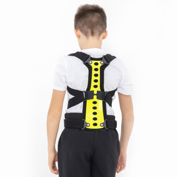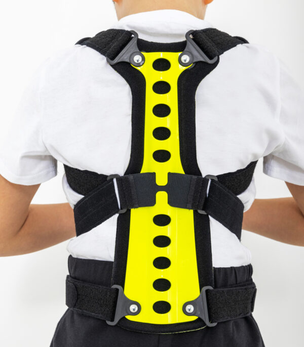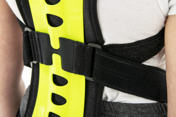 Regularnie stosowana orteza STRADA zapobiega przyjmowaniu zgarbionej pozycji, redukuje ryzyko klinowacenia kręgów i zmniejsza dolegliwości bólowe małego pacjenta. Dodatkowo, podpaszki ortezy powodują retrakcję łopatek i zmniejszają wysunięcie głowy i barków do przodu. W środkowej części stelaża zastosowaliśmy specjalny gumowy element, który działa jako dynamiczny naprężacz podpaszek. Dzięki takiemu rozwiązaniu, podpaszki dostosowują się do każdego ruchu pacjenta i nie ograniczają jego ruchomości. Dynamiczny naprężacz to również doskonały efekt kompresji, który zapobiega nadmiernemu rozciąganiu się materiału podpaszek i gwarantuje pełną profesjonalną stabilizację i odciążenie.