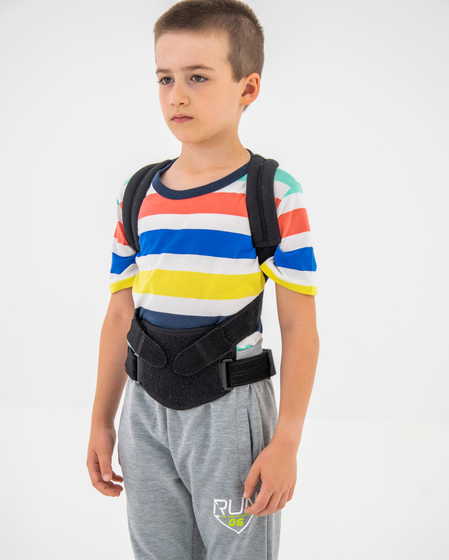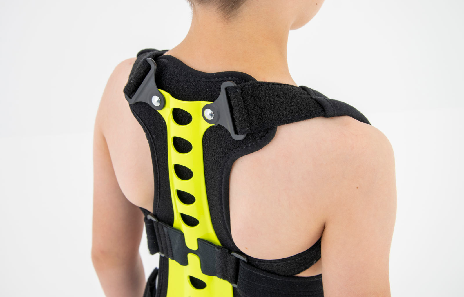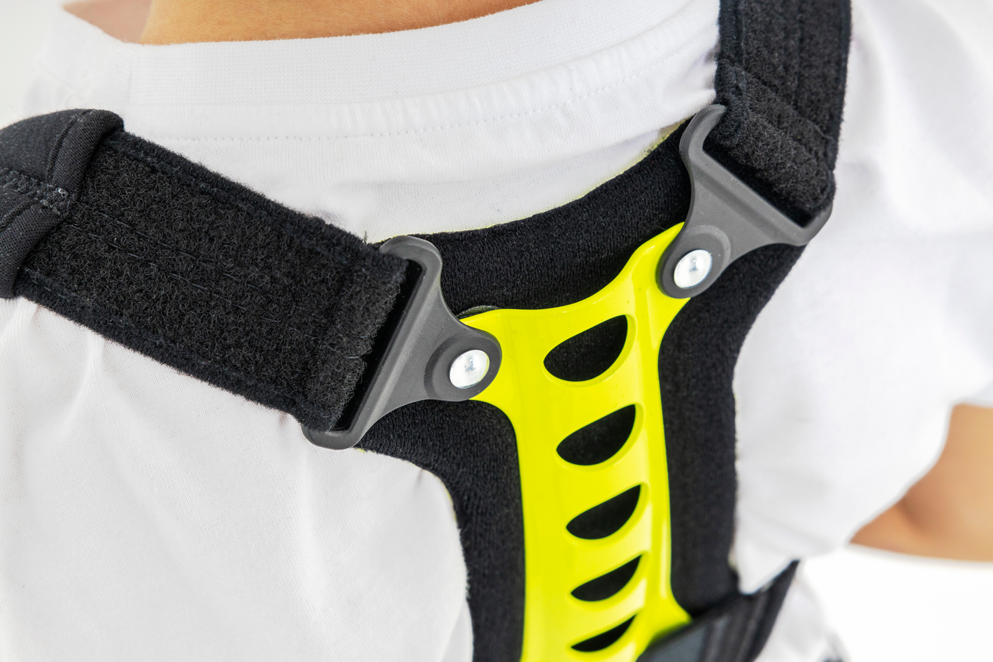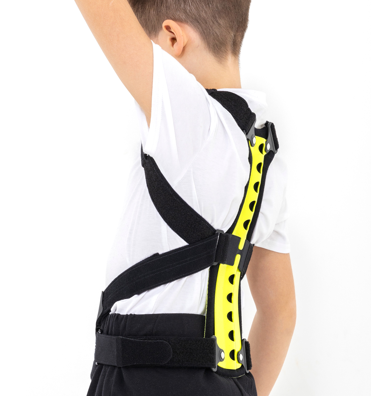 Regularnie stosowana orteza STRADA zapobiega przyjmowaniu zgarbionej pozycji, redukuje ryzyko klinowacenia kręgów i zmniejsza dolegliwości bólowe małego pacjenta. Dodatkowo, podpaszki ortezy powodują retrakcję łopatek i zmniejszają wysunięcie głowy i barków do przodu. W środkowej części stelaża zastosowaliśmy specjalny gumowy element, który działa jako dynamiczny naprężacz podpaszek. Dzięki takiemu rozwiązaniu, podpaszki dostosowują się do każdego ruchu pacjenta i nie ograniczają jego ruchomości. Dynamiczny naprężacz to również doskonały efekt kompresji, który zapobiega nadmiernemu rozciąganiu się materiału podpaszek i gwarantuje pełną profesjonalną stabilizację i odciążenie.