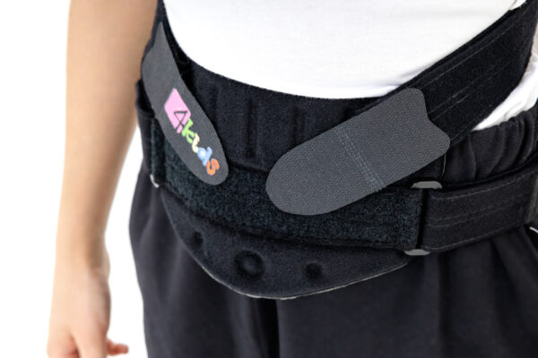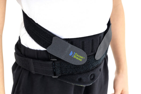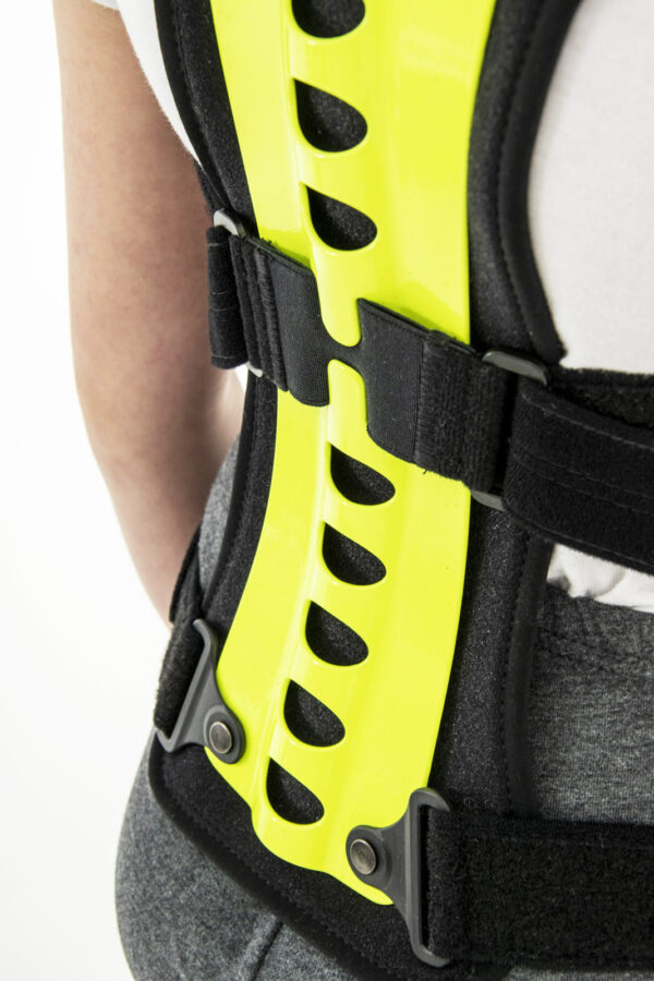 W ortezie zastosowano również pelotę brzuszną, która stanowi punkt podparcia i reguluje prawidłowe ustawienie lordozy lędźwiowej.