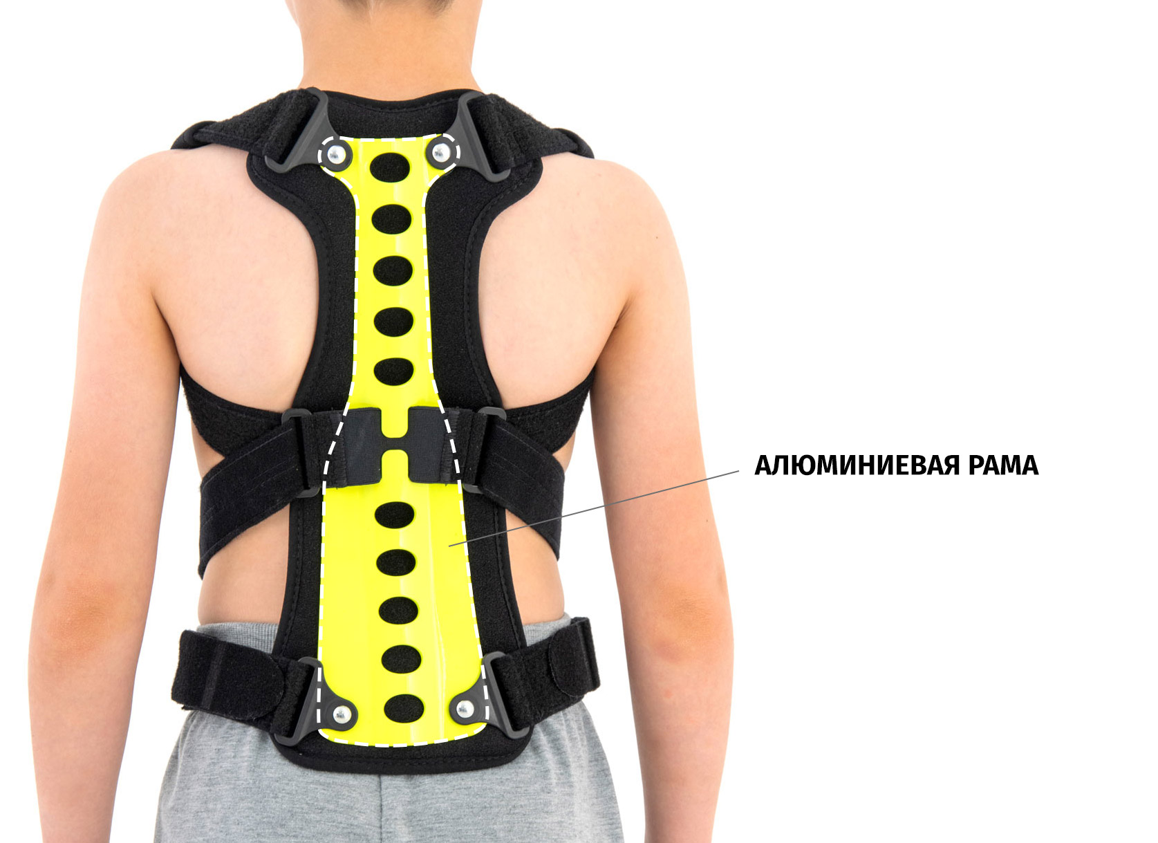 Stelaż posiada anatomicznie wyprofilowany kształt, który zapewnia perfekcyjne odciążenie kręgosłupa piersiowego, lędźwiowego i krzyżowego. Wąski kształt między łopatkami nie powoduje nieprzyjemnego ucisku i dyskomfortu w trakcie użytkowania. W stelażu znajdują się specjalne otwory zapewniające ciągły przepływ powietrza, dotlenienie skóry pleców i doskonałą wentylację.
