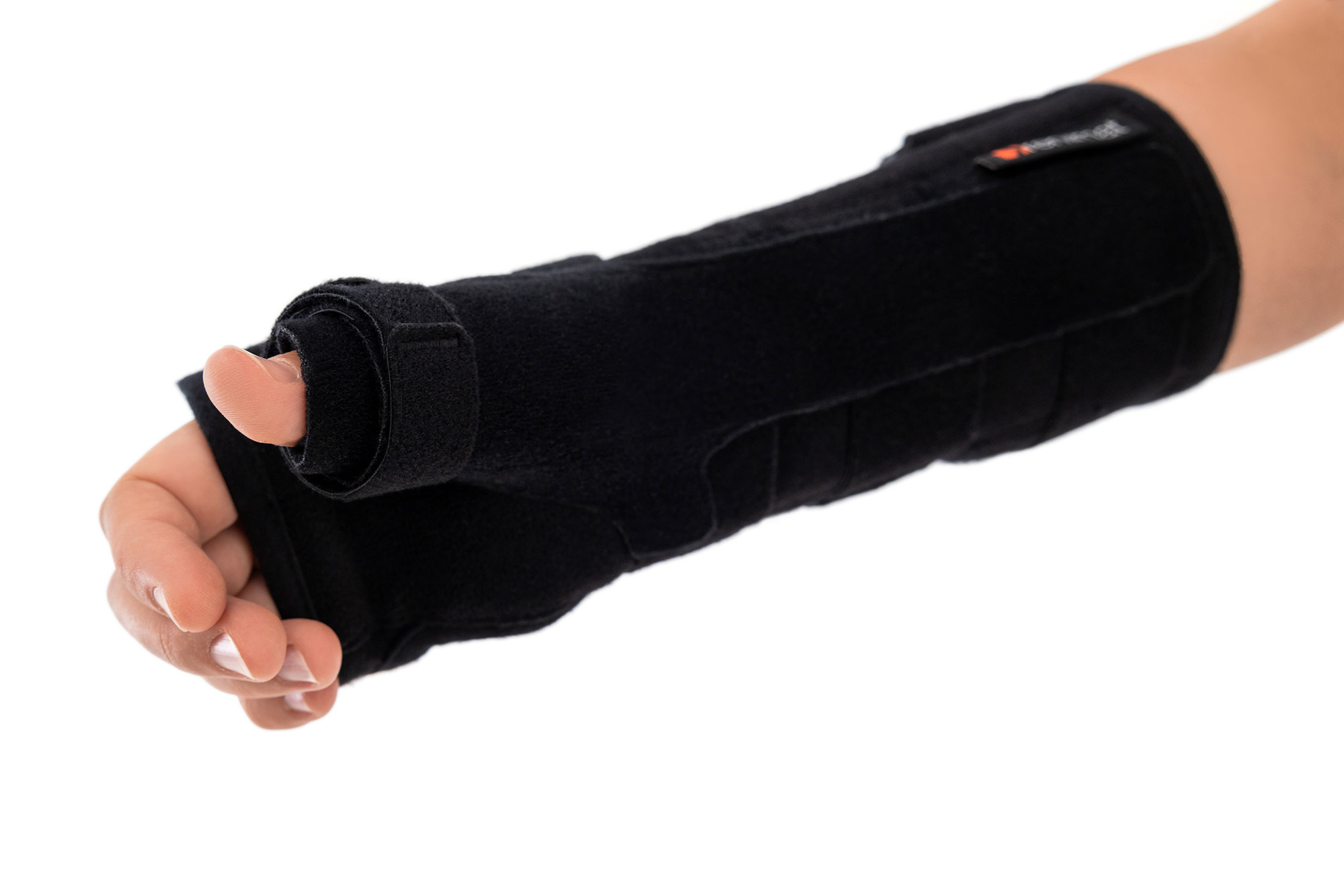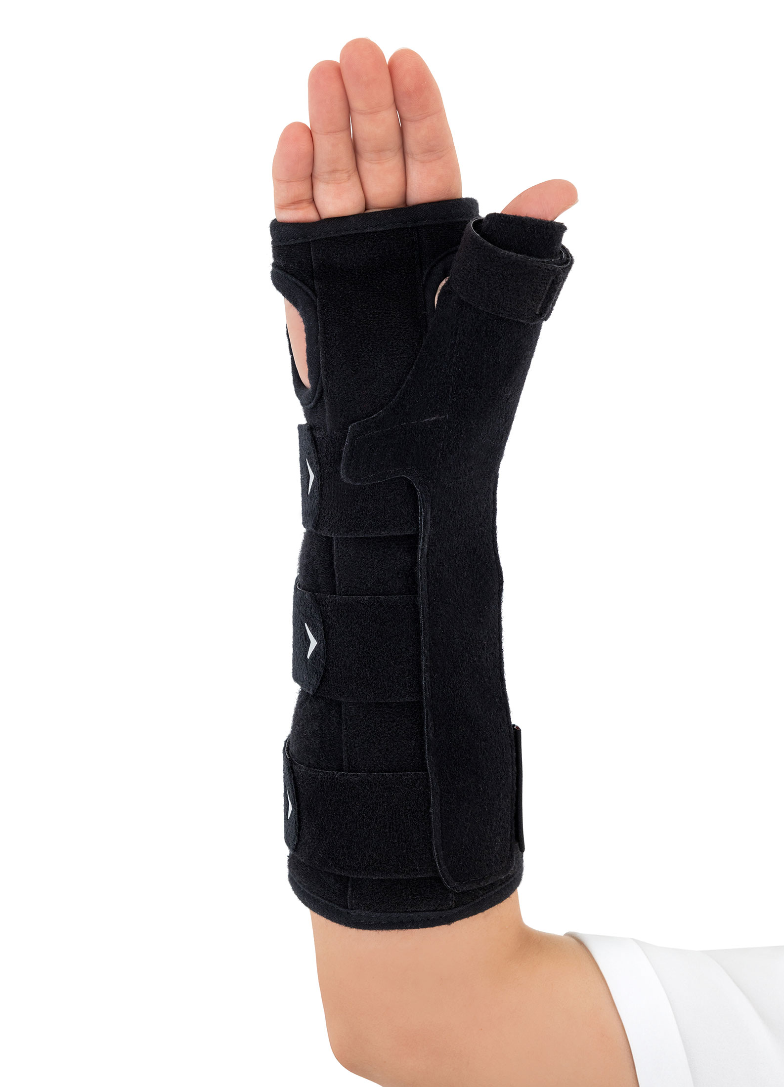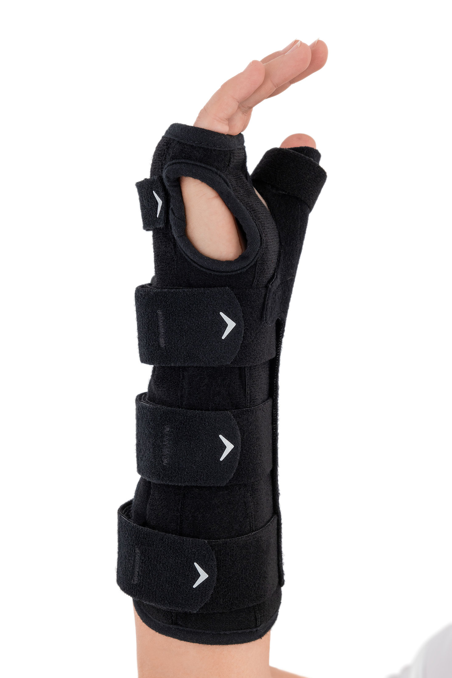 Dodatkowo, wyrób posiada wyprofilowaną szynę boczną kciuka, która skutecznie unieruchamia kciuk w pozycji funkcjonalnej, zmniejszając stan zapalny i wspomagając proces leczenia.