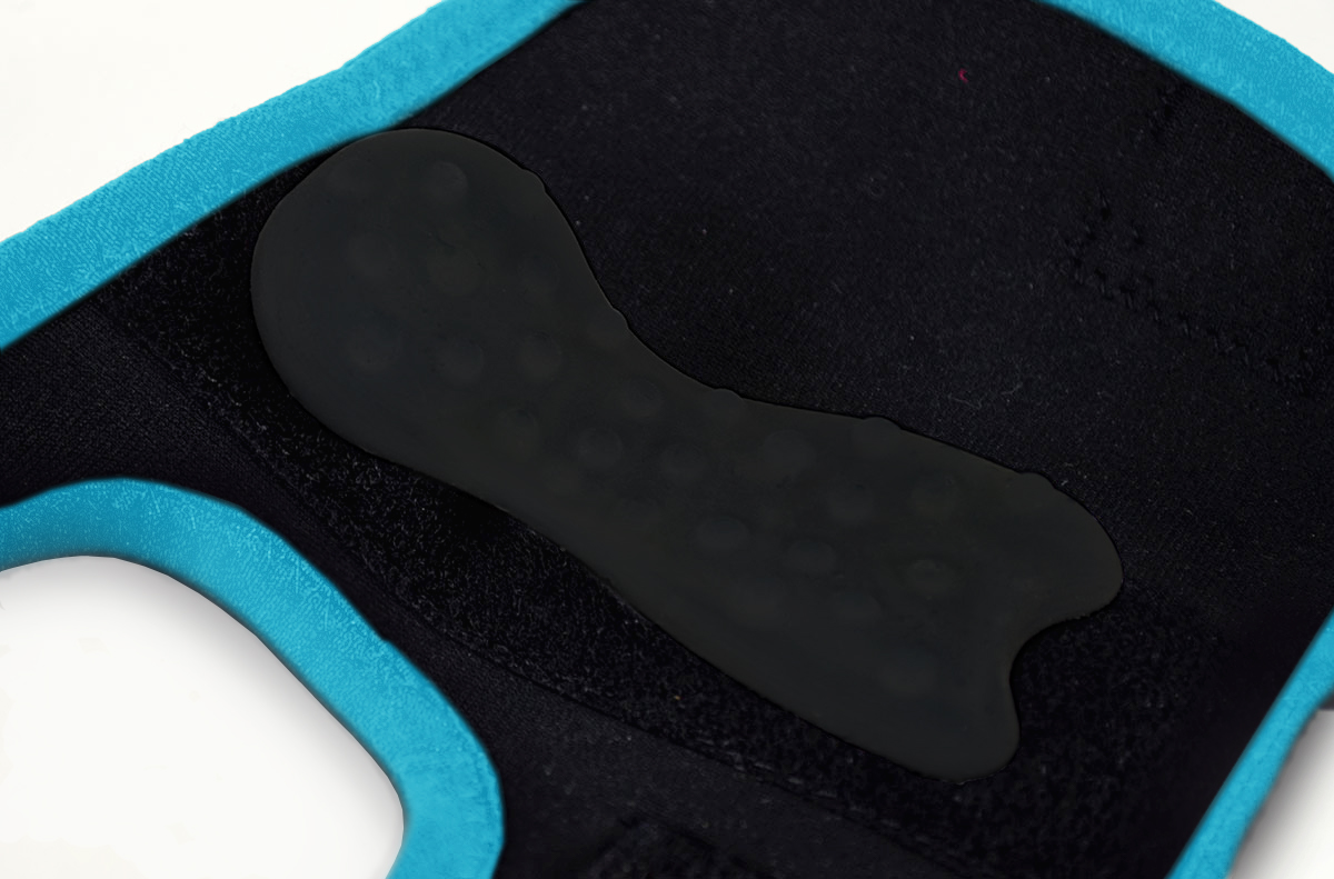 Dodatkowo, wyrób posiada dopinaną pelotę silikonową, odciążającą staw nadgarstkowy i kanał nadgarstka.
