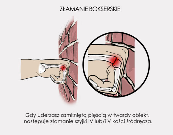 Złamanie bokserskie to schorzenie dość częste, występujące nie tylko w sporcie, ale i w życiu codziennym. Złamanie bokserskie to schorzenie dotyczące IV i V kości śródręcza, a dochodzi do niego gdy pacjent uderzy zaciśniętą pięścią w twardy obiekt.