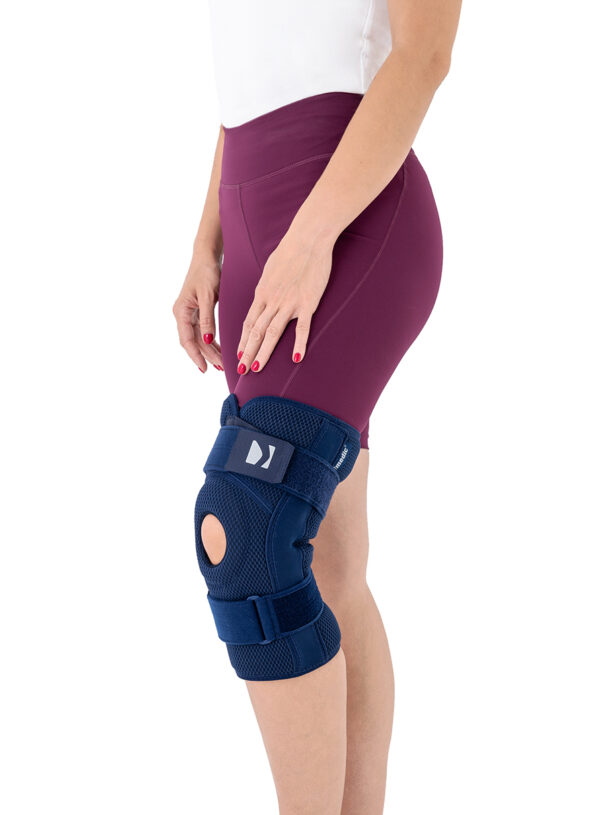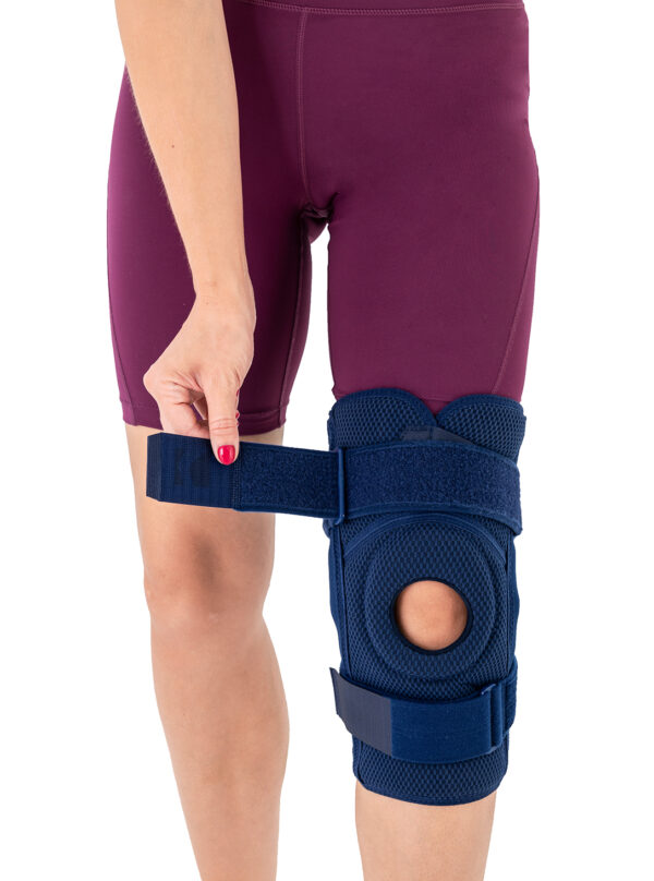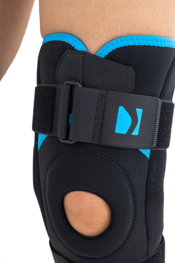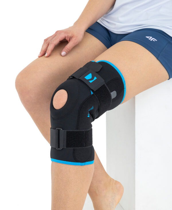 Orteza typu zamkniętego, wykonana z perforowanej pianki neoprenowej, dwustronnie pokrytej tkaniną okładkową. Posiada dwa niezależne zespoły pasów wzmacniających wykonane z taśm VELCRO. Wyrób wyposażono w jednoosiowe szyny boczne, wykonane z wysokiej jakości tworzywa sztucznego zbrojonego włóknami węglowymi. Układ szyn w ortezie oraz ich specyficzna elastyczność, powoduje właściwe przyleganie wyrobu do zabezpieczonej kończyny i pozwala na uzyskanie doskonałej stabilizacji zabezpieczonego stawu. Tak precyzyjna regulacja wyrobu zdecydowanie ułatwia proces rehabilitacji uszkodzonego stawu kolanowego.