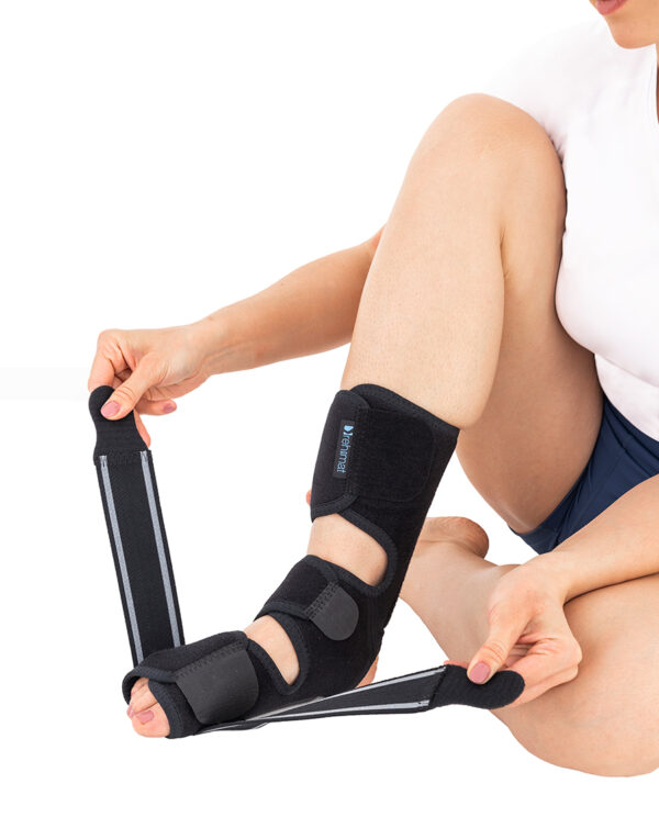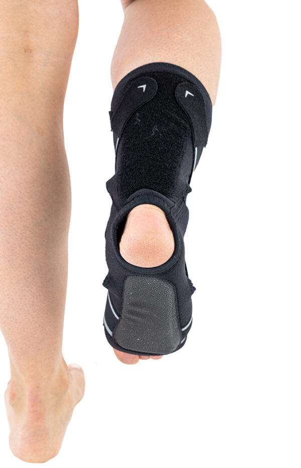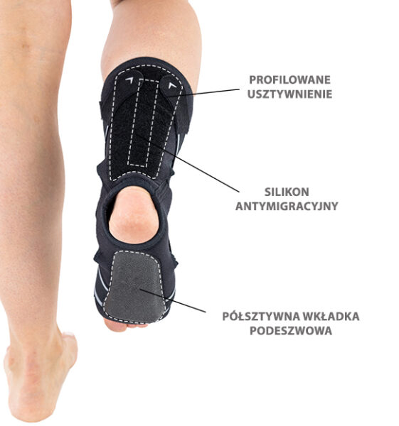 Orteza zapewnia rozciąganie tkanek, wchodzących w skład podeszwy stopy oraz ścięgna Achillesa, skutecznie zmniejszając ból i stan zapalny.